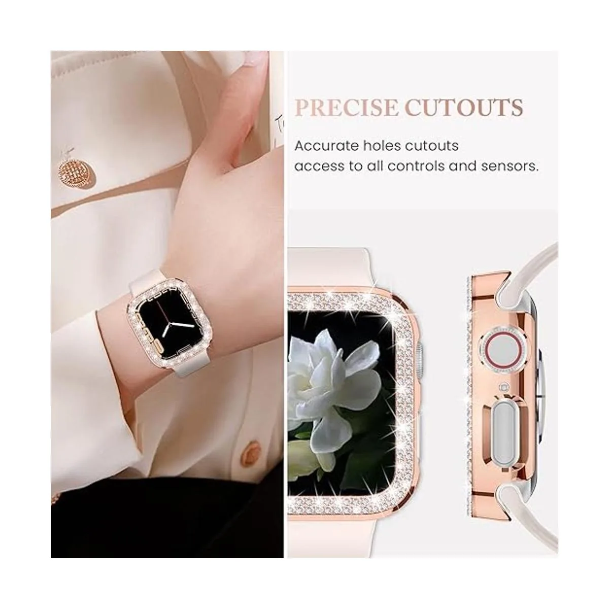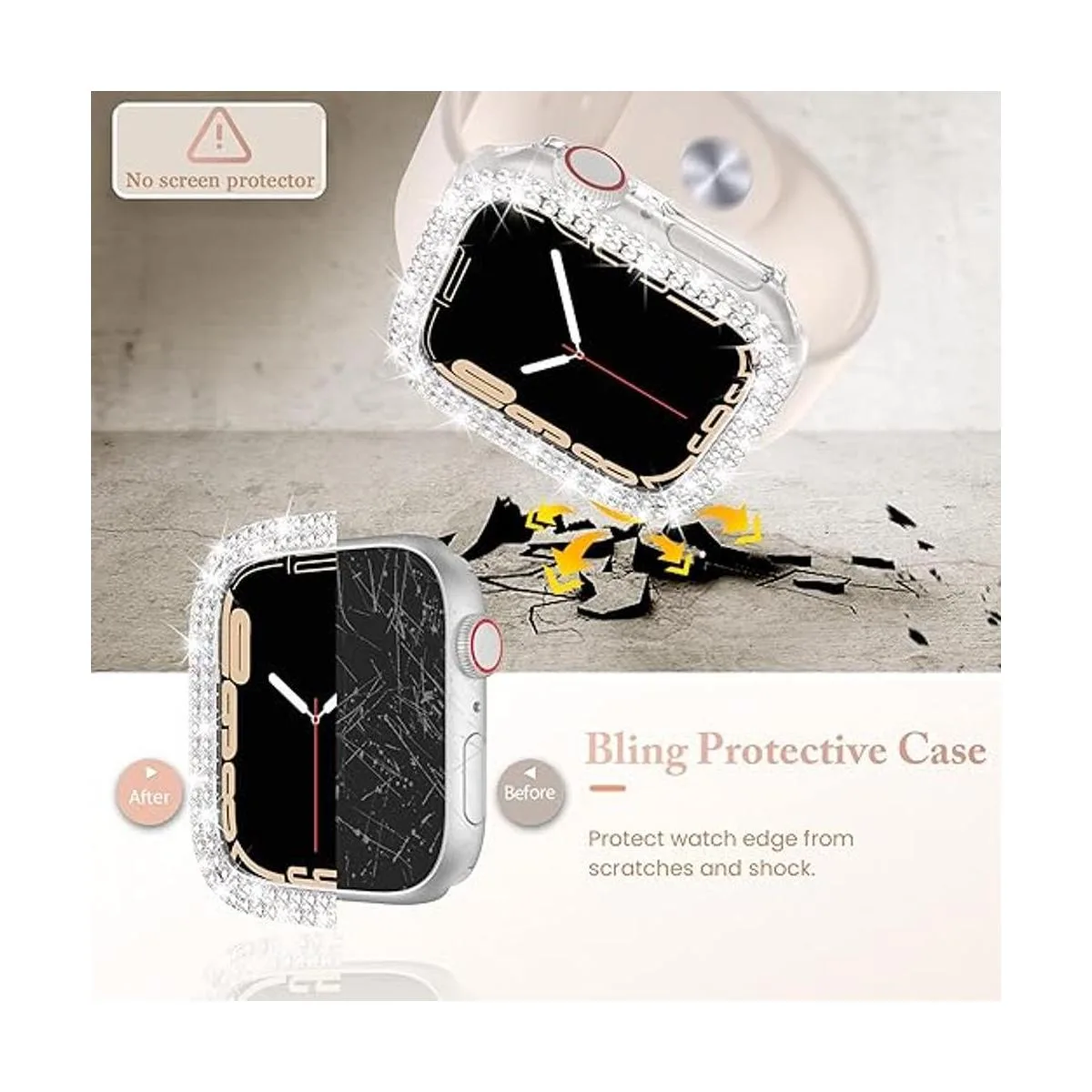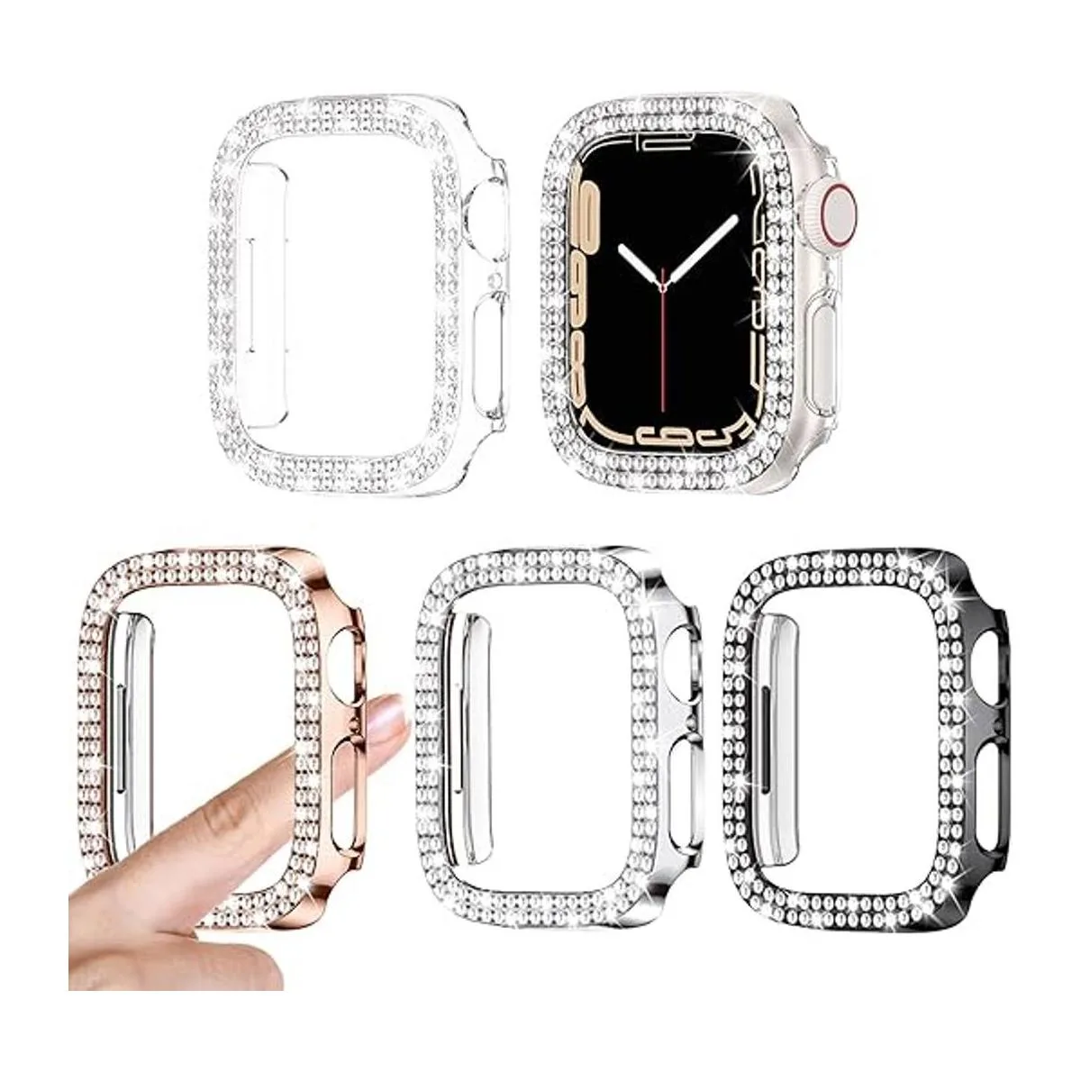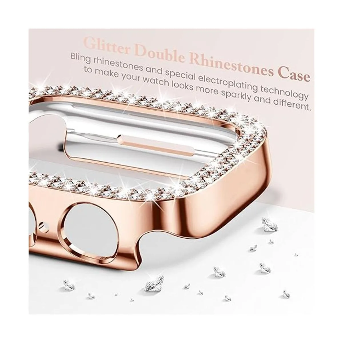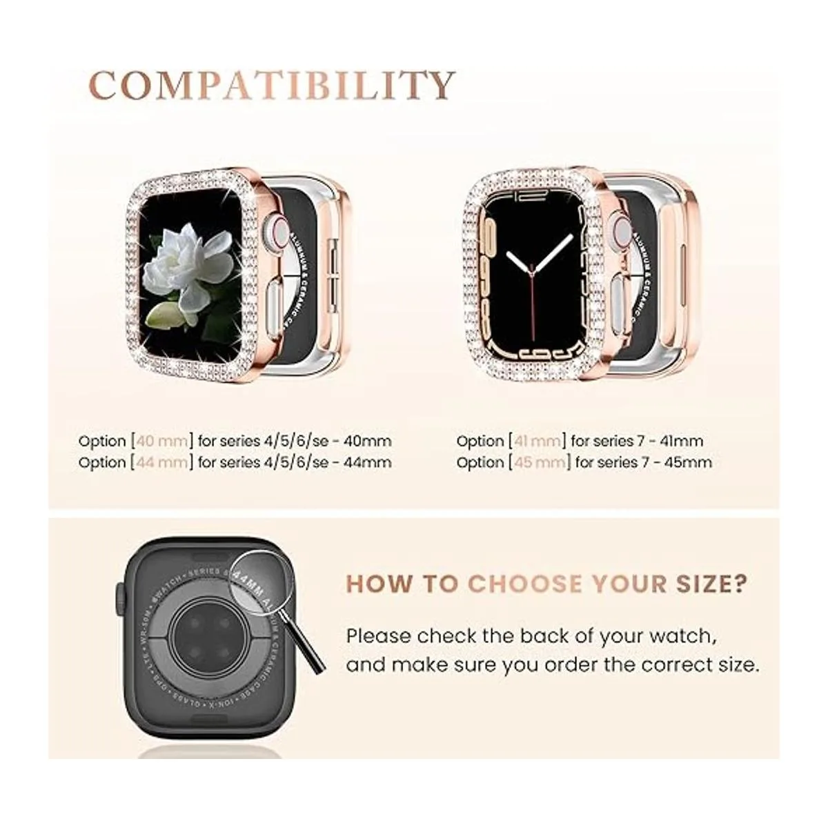 Diseño de diamantes de imitación dobles con purpurina: los diamantes de imitación dobles brillantes están incrustados en la máscara del reloj, y la funda para iWatch adopta tecnología especial de galvanoplastia para hacer que tu reloj se vea más diferente, te dará muchos cumplidos. Moderno y duradero, perfecto para el trabajo y ocasiones elegantes. Múltiples cajas de reloj para satisfacer tus necesidades diarias.