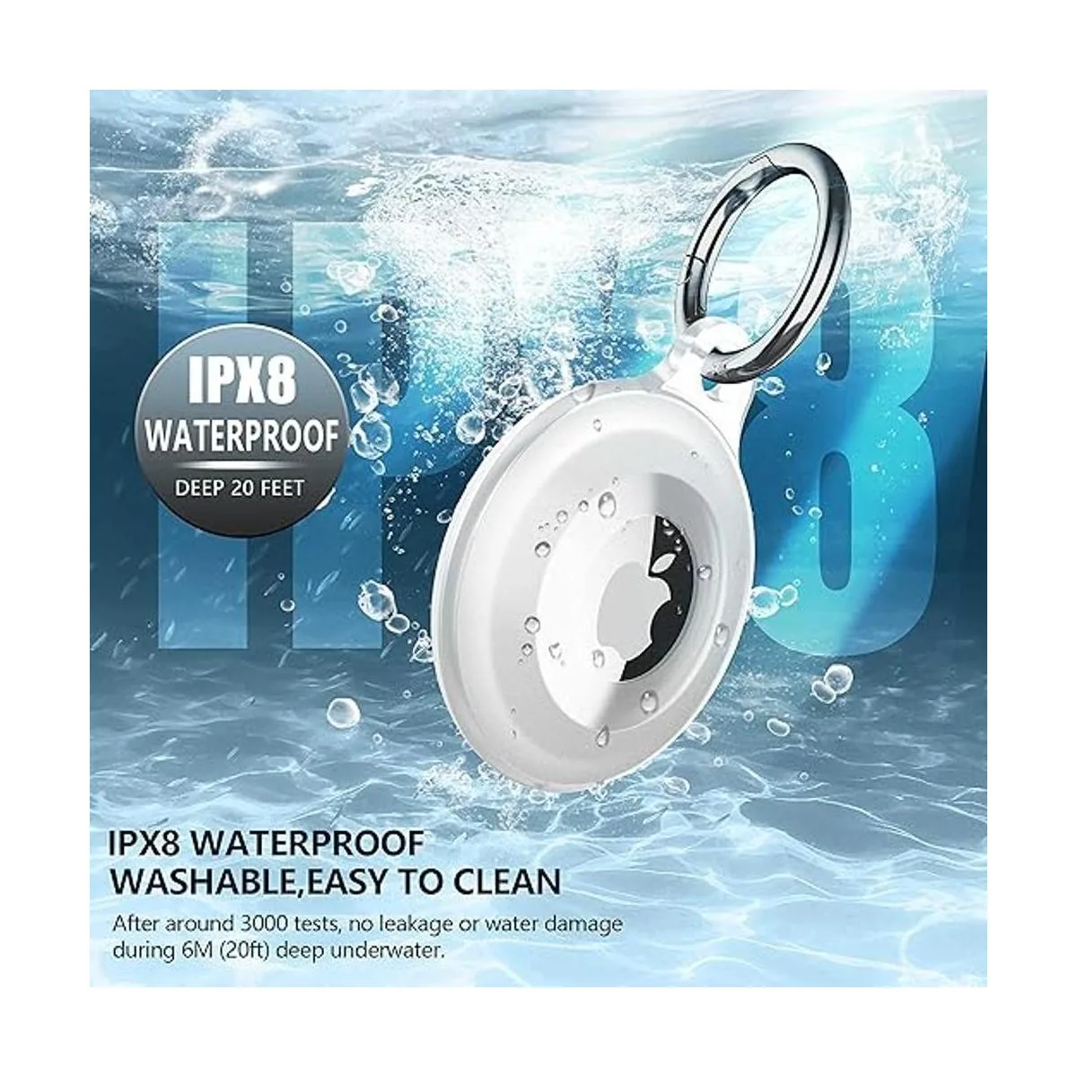 Paquete de 4 fundas impermeables IPX8 para AirTag con llavero, ligeras, antiarañazos, fácil de instalar, suave, a prueba de golpes, para equipaje, collar de perro, negro, transparente, azul, rosado