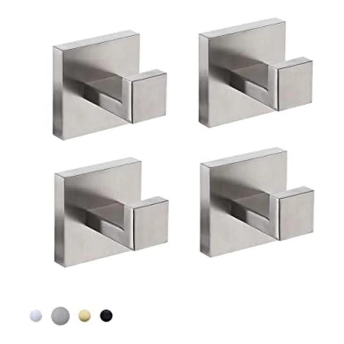 Paquete de 4 ganchos para toallas de baño, para cocina, dormitorio, hotel, diseño moderno sin esfuerzo, ganchos de toallas de montaje con acabado cepillado COUOBO
