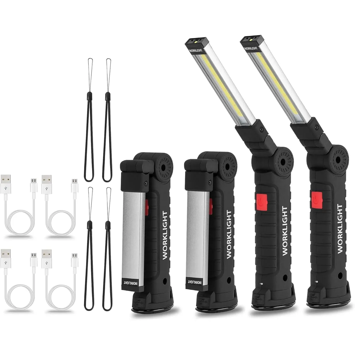 Paquete de 4 linternas LED recargables de trabajo, herramientas mecánicas de Vagocom, luz de trabajo inalámbrica con base magnética de rotación de 360, 5 modos, luz de emergencia portátil para regalos hechos a mano, automotriz, camping y hombres