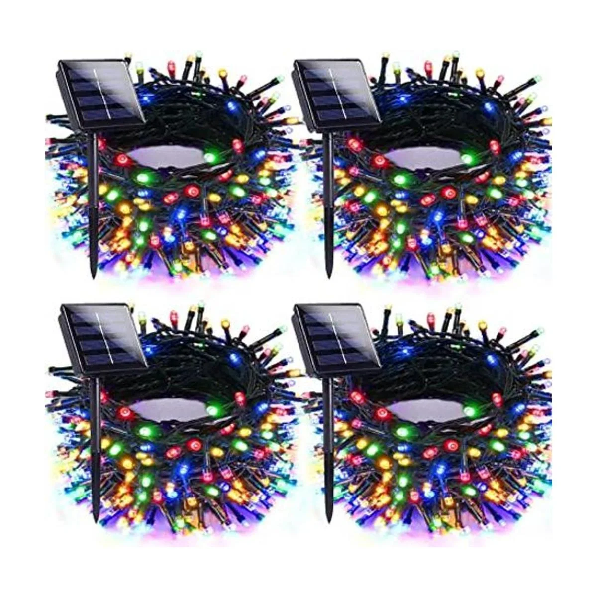 Paquete de 4 luces solares de Navidad impermeables para exteriores, 100 luces LED de 33 pies, cable verde con 8 modos, luces solares de hadas para árbol de Navidad, fiesta, boda, jardín, decoración multicolor
