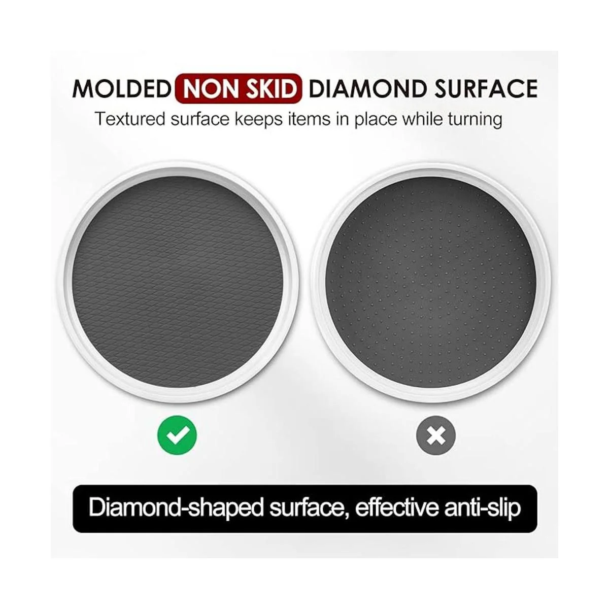 El producto incluye: 4 tocadiscos de plástico giratorios fácilmente de 12 pulgadas Superficie antideslizante de silicona en forma de diamante con base antideslizante.
