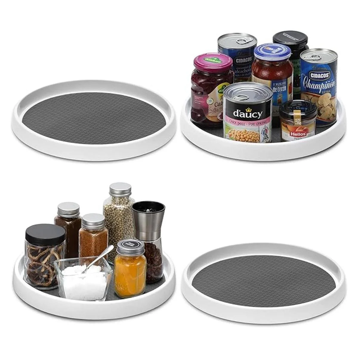 Perfecto para varios lugares: estos giratorios mantienen tu hogar organizado y ordenado. Organizador de almacenamiento giratorio perfecto para mesa, encimera de cocina, debajo del fregadero, armario de armario, despensa, refrigerador, encimera de baño, maquillaje de tocador, oficina y mucho más.