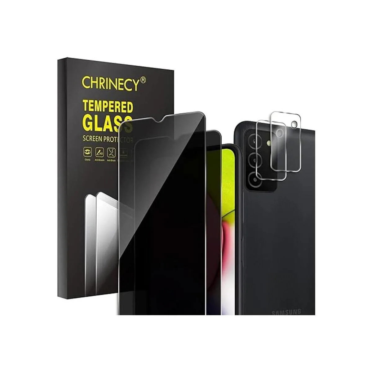 Paquete de 4 protectores de pantalla de privacidad compatibles con Samsung Galaxy A03s con 2 protectores de lente de cámara, dureza 9H, antiespía y antiespía de vidrio templado