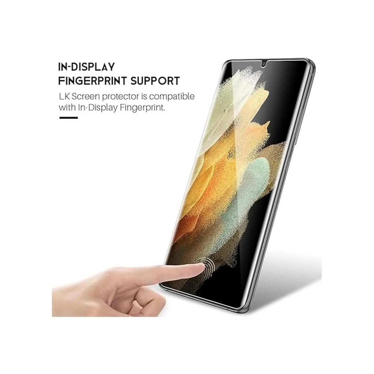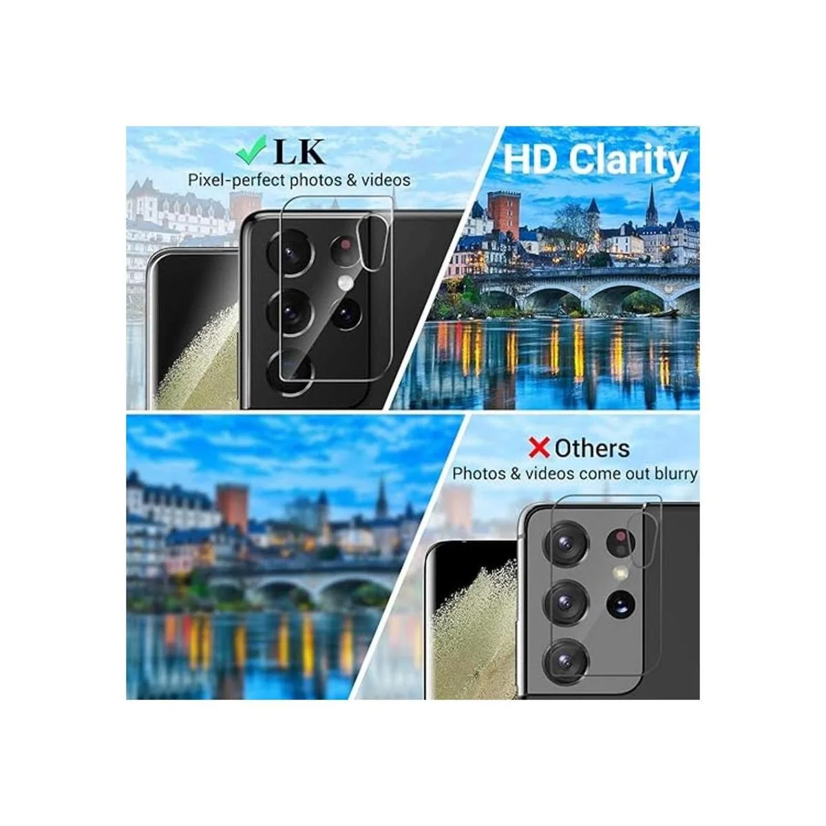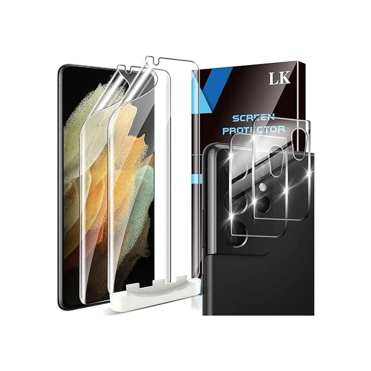Paquete de 4 protectores de pantalla LK y 2 protectores de lente de cámara compatibles con Samsung Galaxy S21 Ultra, herramienta de posicionamiento, soporte de huellas dactilares en pantalla, película de TPU ultrafina, flexible y ultrafina.