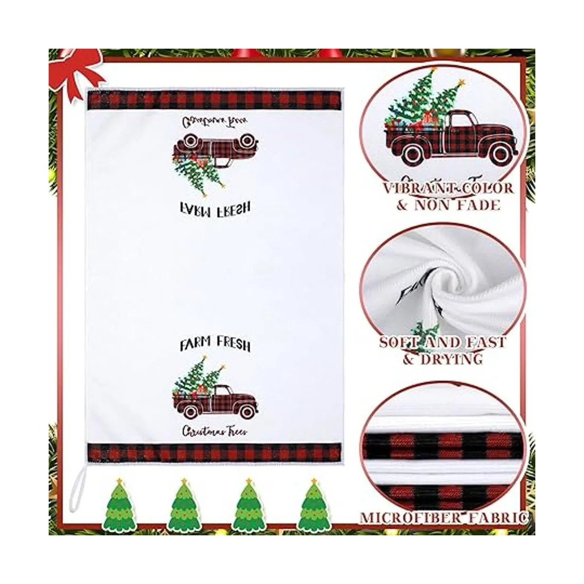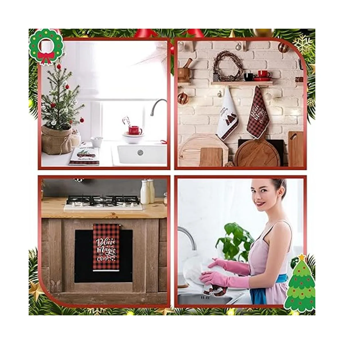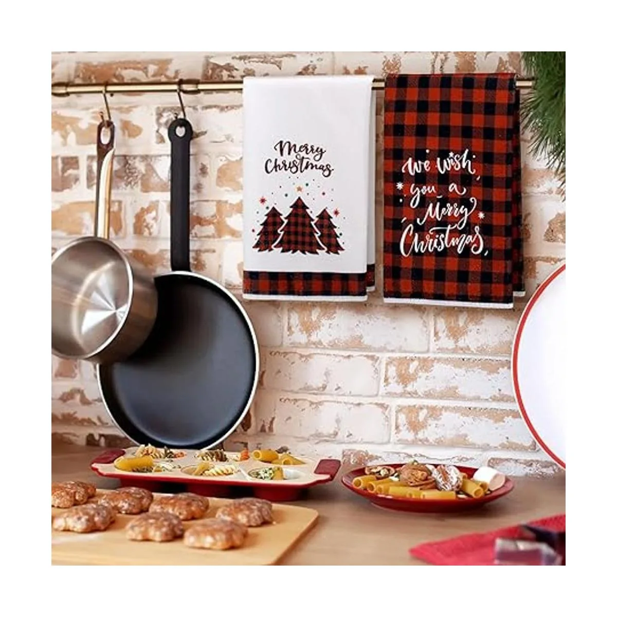 Tema de Navidad y estilo de granja: estas toallas de Navidad han sido cuidadosamente diseñadas en 4 estilos diferentes, y puedes ver citas de Navidad bien diseñadas en estilos de fuente, y el diseño de cuadros de búfalo es muy elegante y llamativo