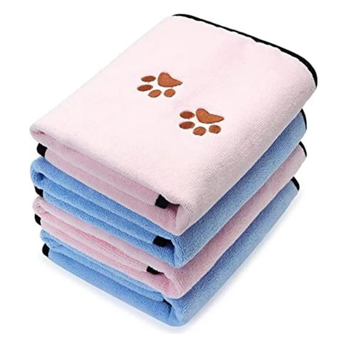 Paquete de 4 toallas para perros para secar perros, toallas de microfibra suaves y absorbentes, toallas de baño para mascotas, toallas de secado de perros con patas bordadas para mascotas, perros, gatos, baño y aseo azul, rosa, 35 x 20 pulgadas