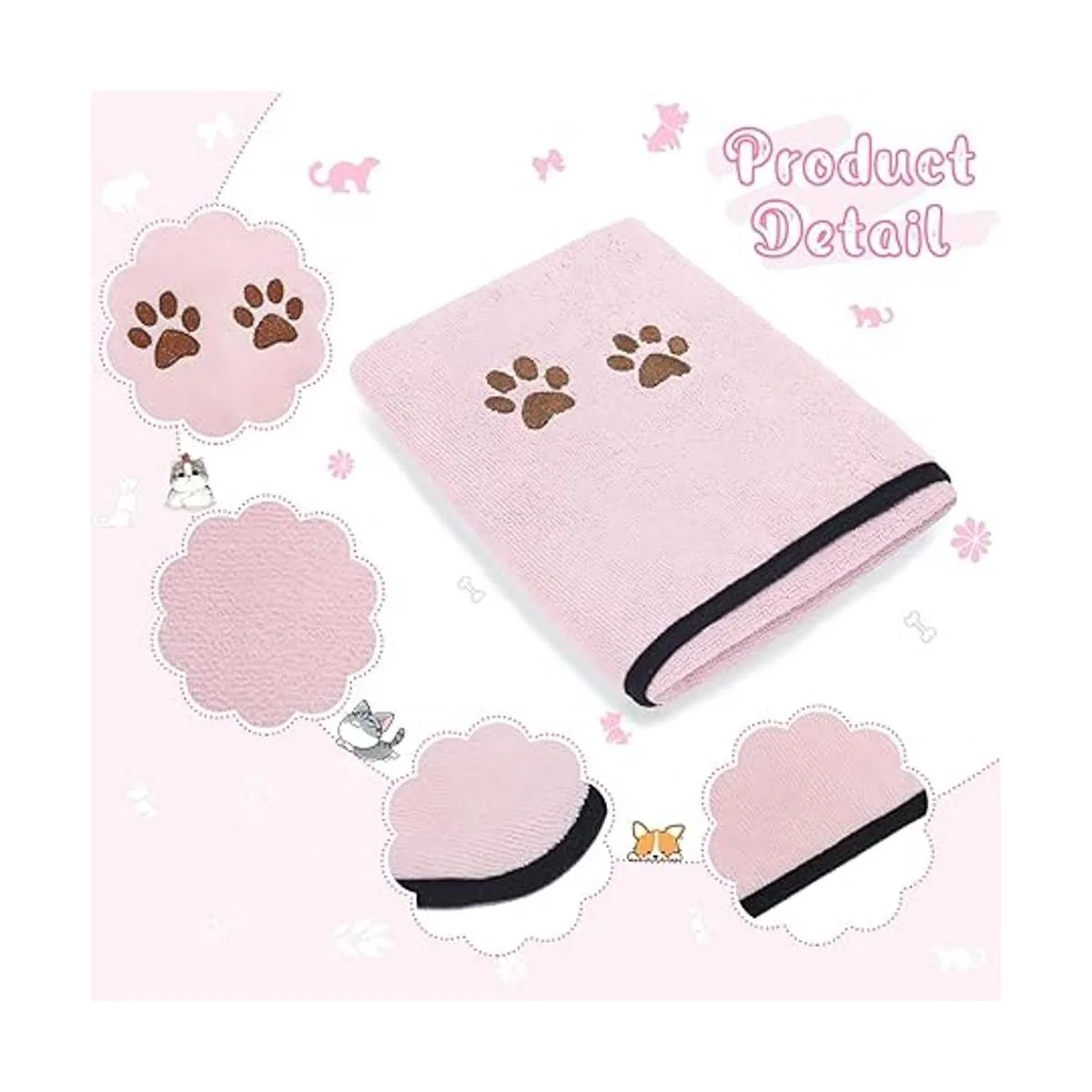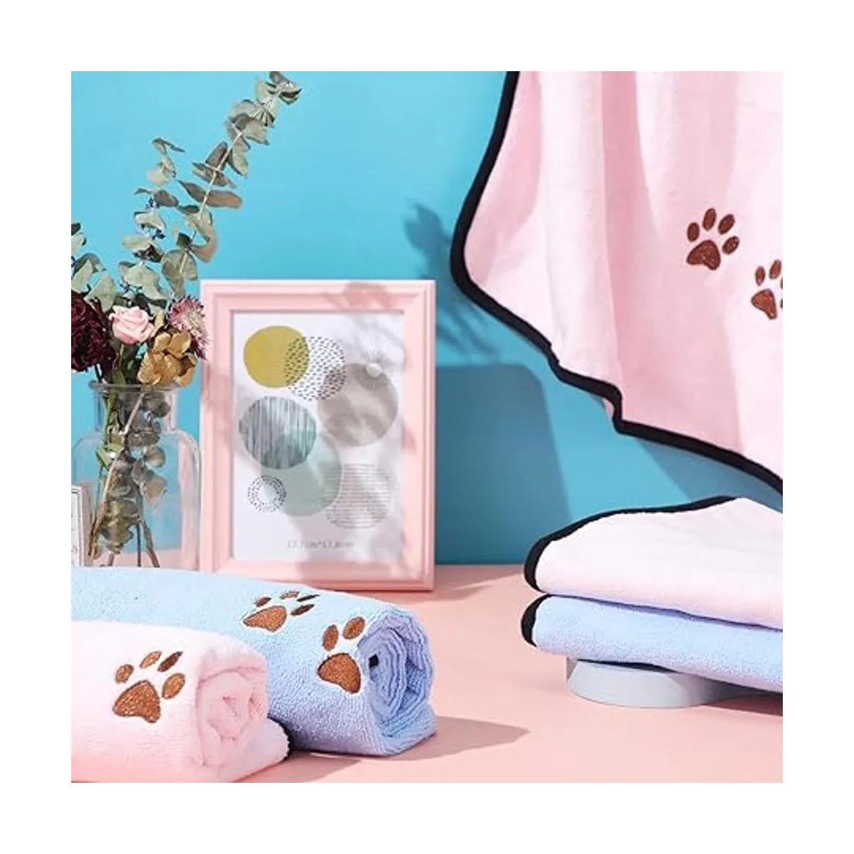 Bonito diseño de bordado de patas: delicado bordado de pata de perro, buena mano de obra, buena envoltura de bordes, textura apretada, fina y firme, cada detalle puede hacer que la toalla de baño para mascotas sea útil y duradera, un regalo encantador y práctico para tus amigos peludos