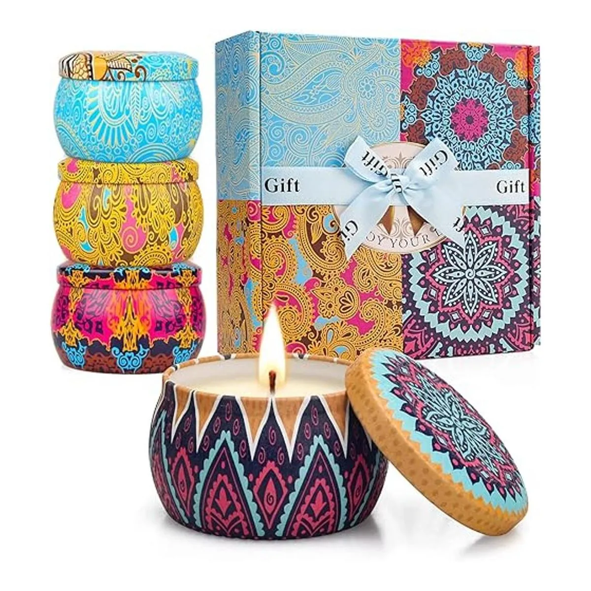 Fragancia acogedora: este juego de regalo incluye 4 latas de vela perfumada: lavanda, limón, higo mediterráneo, primavera fresca; cada vela emite un aroma tranquilo y agradable
