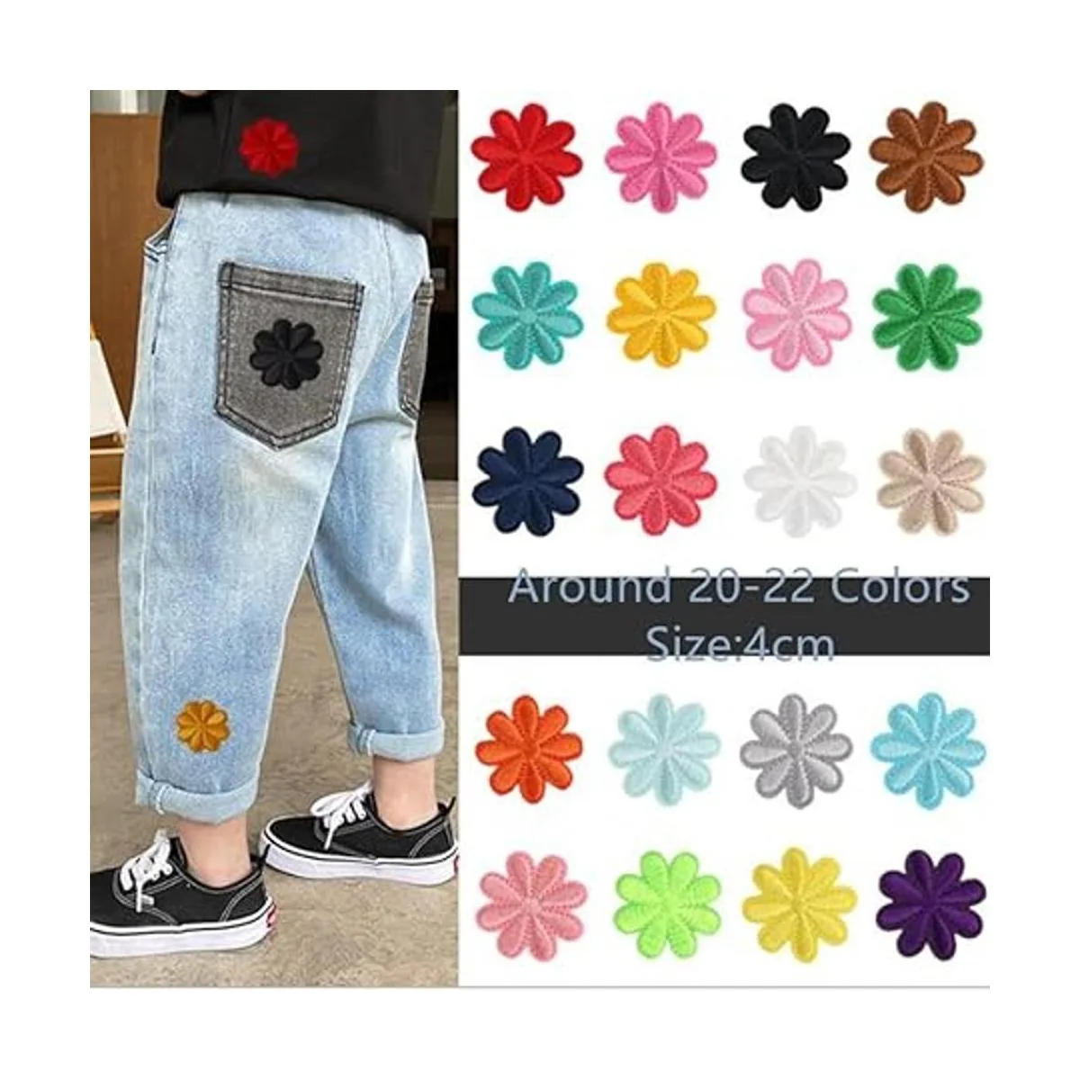 Paquete: 40 parches de flores para planchar, 20 parches de flores blancas de diferentes colores, parches de flores azules, parche de flores rosas, parche de flores grises, parche de flores beige, parche de flores amarillas, parche de flores doradas, parche de flores moradas, parche de flores verdes, etc.