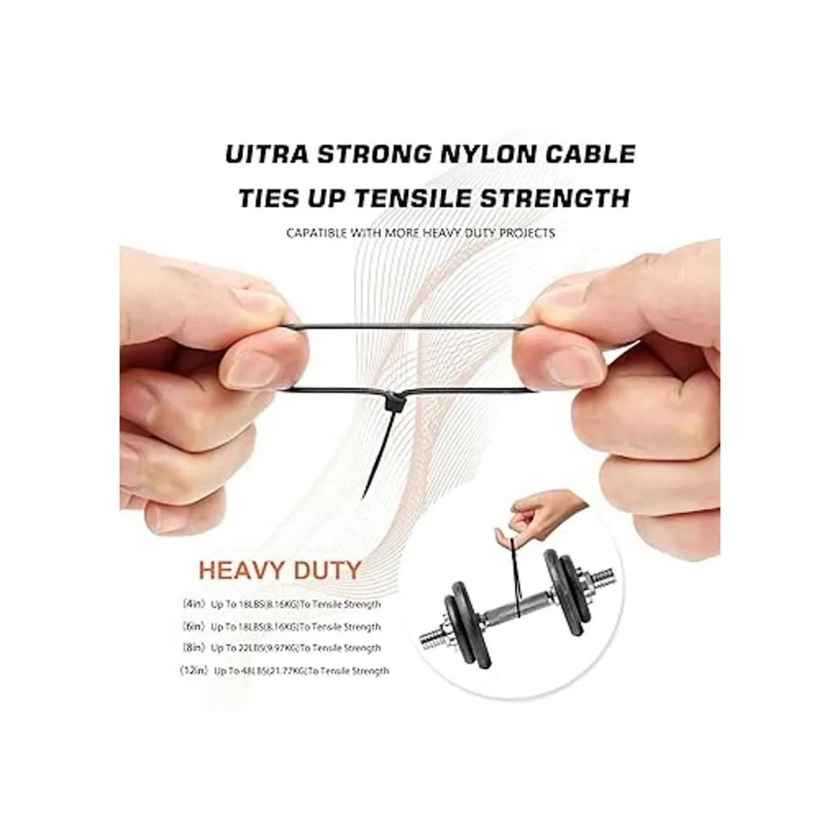 Resistencia a la tracción del sujetacables: resistencia a la tracción del bucle. 4 pulgadas 18 libras, 6 pulgadas 18 libras, 8 pulgadas 22 libras, 12 pulgadas 48.5 libras. Este paquete de sujetacables viene en varios tamaños para una amplia gama de necesidades personales y profesionales. Los sujetacables de diferentes tamaños y resistencia a la tracción son adecuadas para proyectos multiusos en diferentes ocasiones.