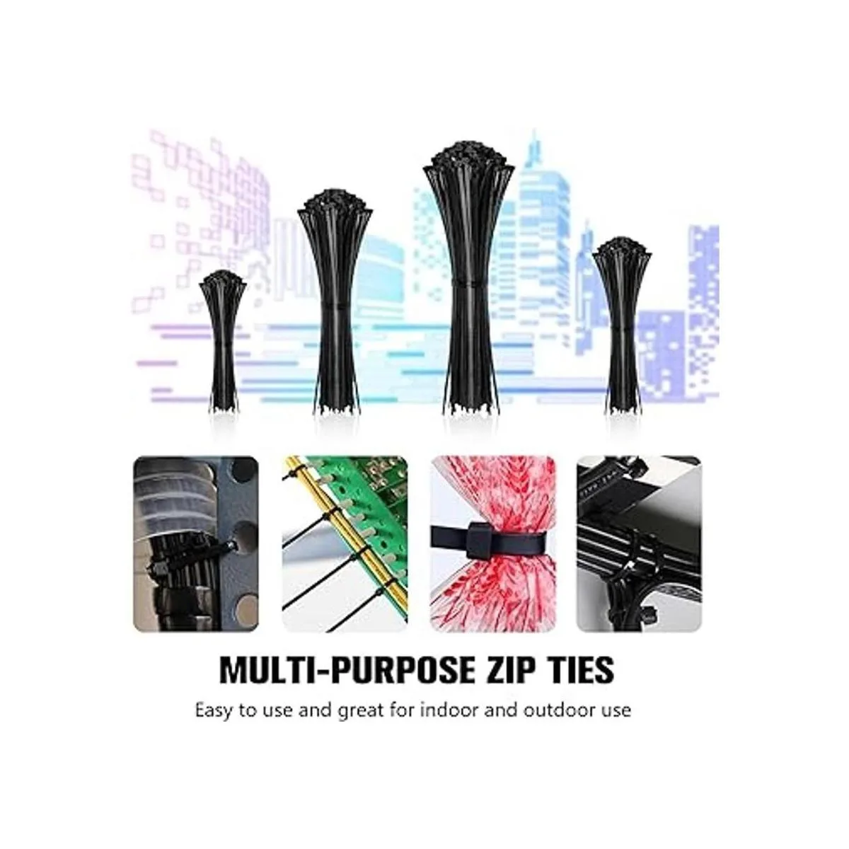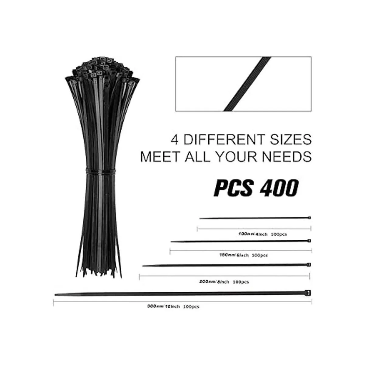 Paquete de 400 bridas negras con cremallera en varios tamaños de 12 8 6 4 pulgadas, bridas multiusos, de nailon autobloqueante, lazos de alambre de plástico para el hogar, oficina, jardín, taller
