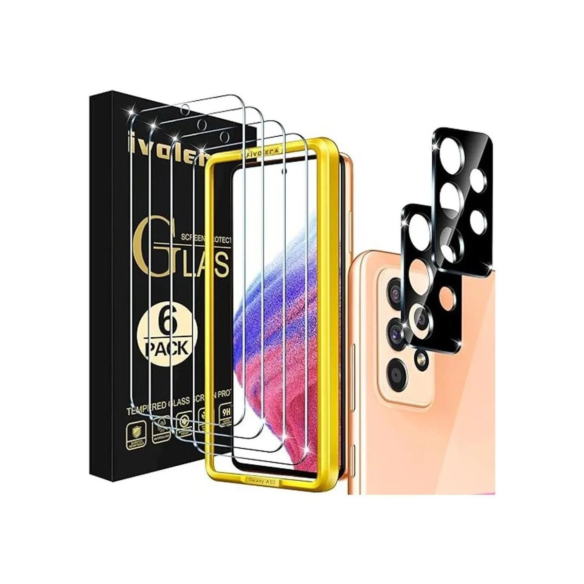 Paquete de 42 iVoler Protector de pantalla para Samsung Galaxy A53 5G de 6.5 pulgadas 2022 paquete de 4 unidades Protector de lente de cámara de vidrio templado con Marco de alineación transparente HD transparente antiarañazos, 6.5 pulgadas