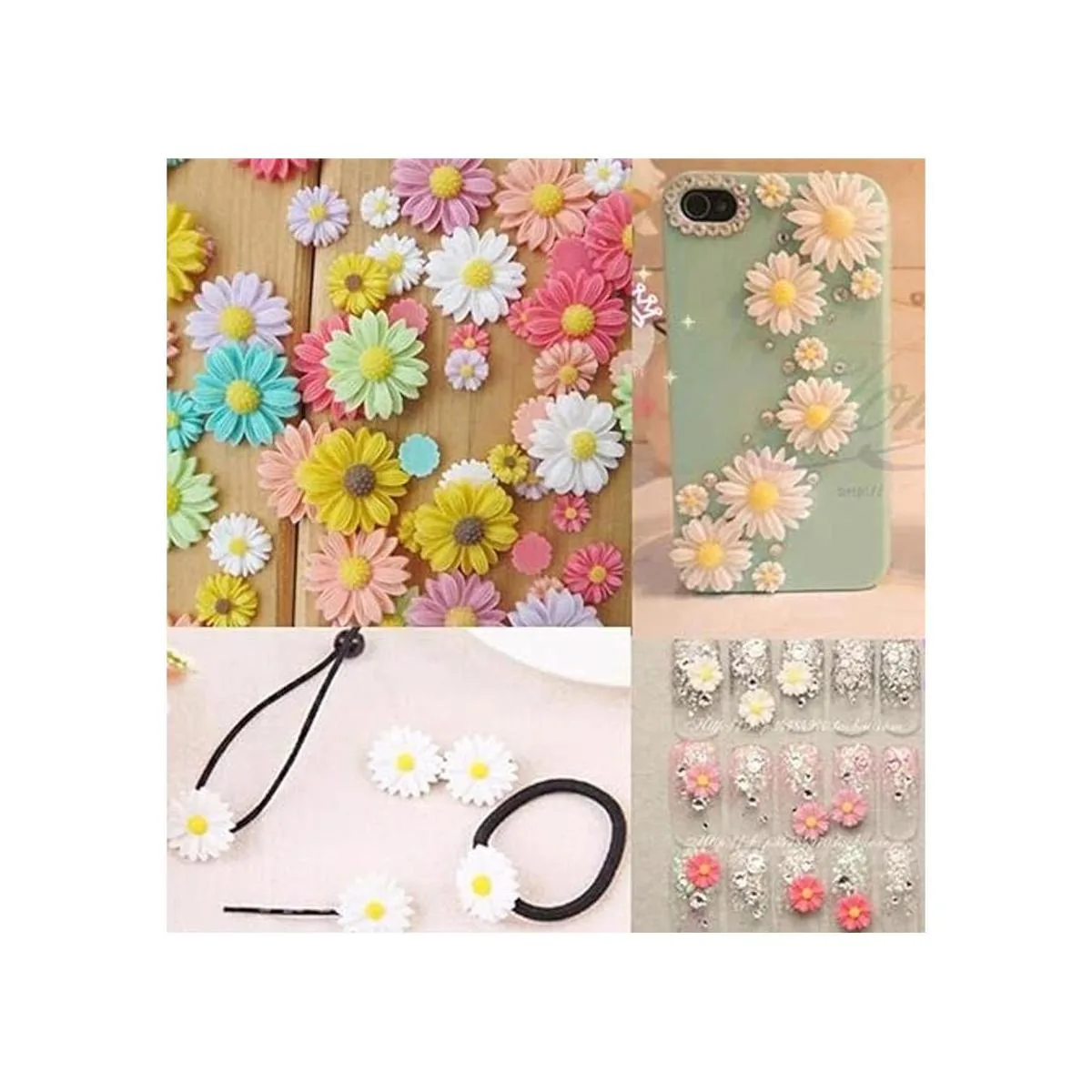 Entrega de color aleatorio, dijes de flores para slime: 44 flores de resina surtidas en 11 tamaños diferentes y en 4 colores verde, rosa, morado, blanco, el tamaño promedio es de aproximadamente 0.8 in. Las mini margaritas de resina son adecuadas para accesorios para el cabello, llaveros, decoración de funda de teléfono y miniaturas, accesorios de jardín de hadas, accesorios para el cabello, etc.