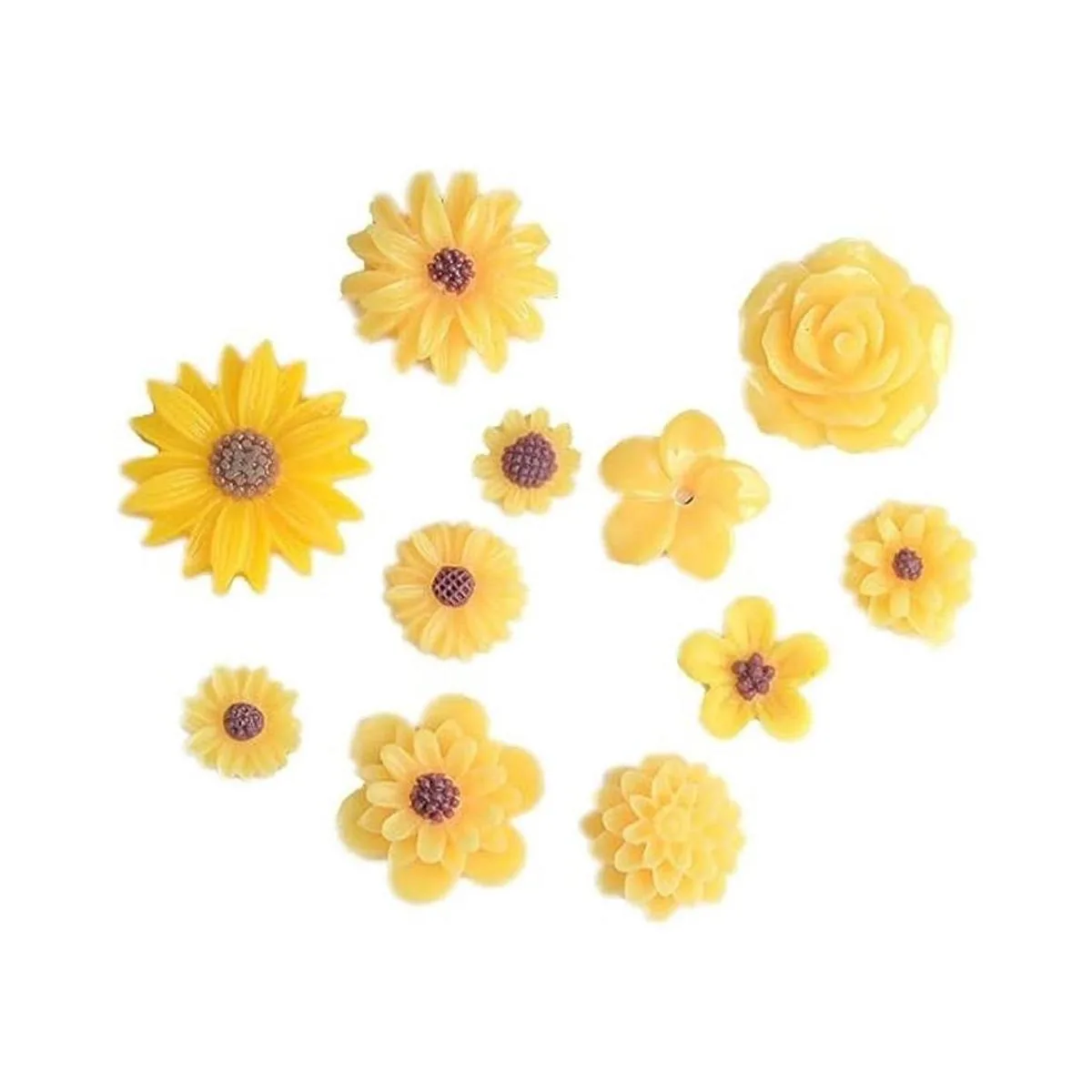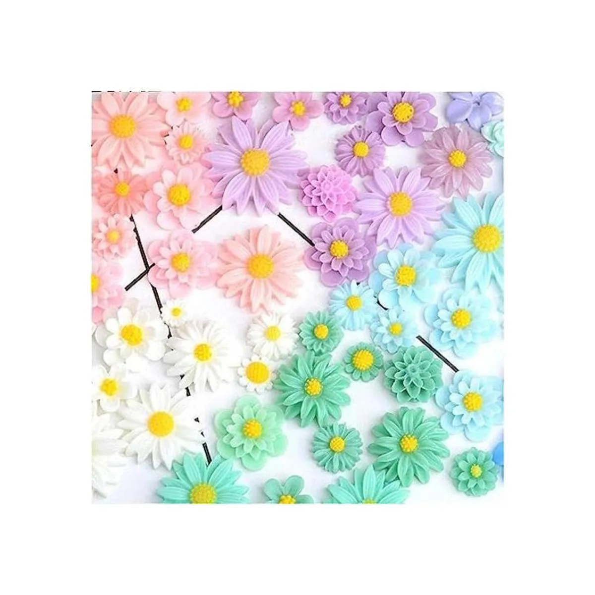 Paquete de 44 abalorios de flores de margaritas peonías de resina plana para hacer joyas, álbumes de recortes, decoración de funda de teléfono, accesorios para el cabello, decoración de jardín de hadas, Plástico Resina