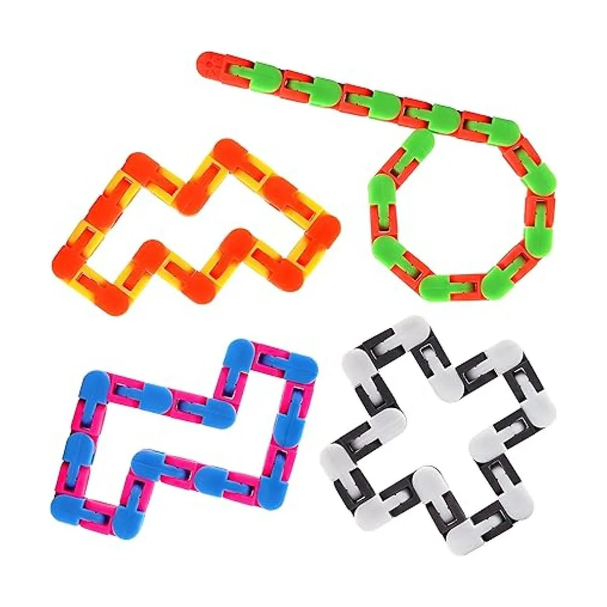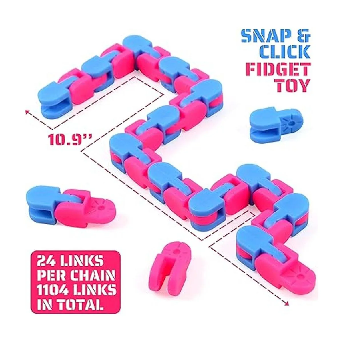 Paquete de 46 juguetes sensoriales de 24 eslabones con pistas locas, juguetes para ansiedad a presión y clic, juguete de rompecabezas de serpiente para recuerdos de fiesta, cadenas de plástico, juguetes sensoriales para dedos, juguetes para aliviar el estrés para niños