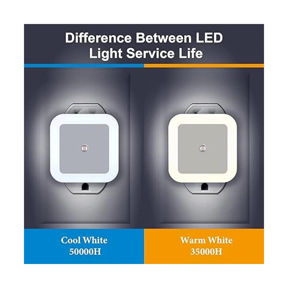 Diseño de control de luz inteligente: cuando estas luces LED nocturnas con sensor inteligente están conectadas, las luces ajustarán el brillo de la luz LED de acuerdo con el brillo del entorno; pueden encender o apagar la luz cuando la luz externa esté tenue o brillante automáticamente