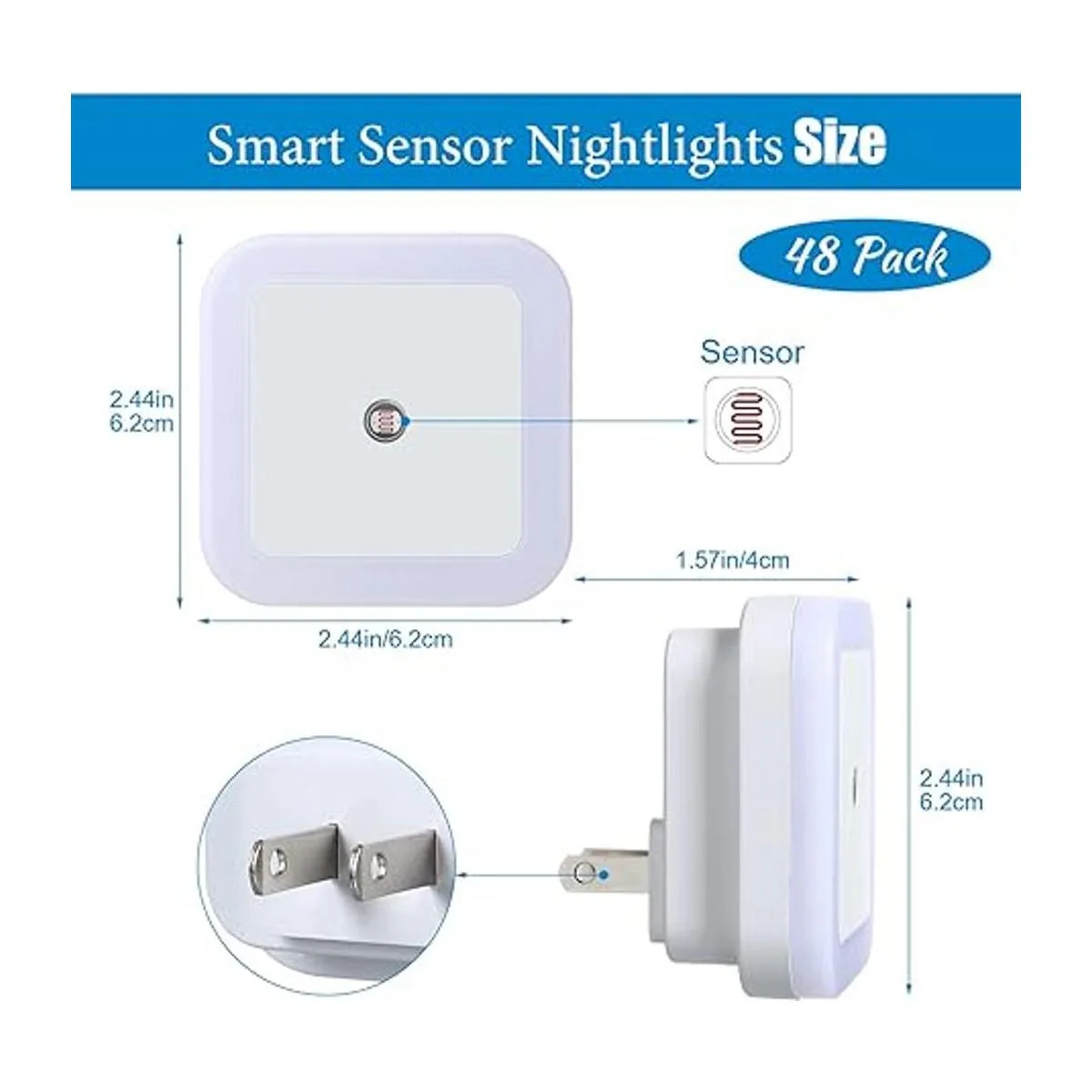 Paquete de 48 luces LED de noche enchufables a la pared, sensor inteligente de atardecer a amanecer, lámpara nocturna automática, accesorios para dormitorio, baño, inodoro, escaleras, pasillo de cocina blanco