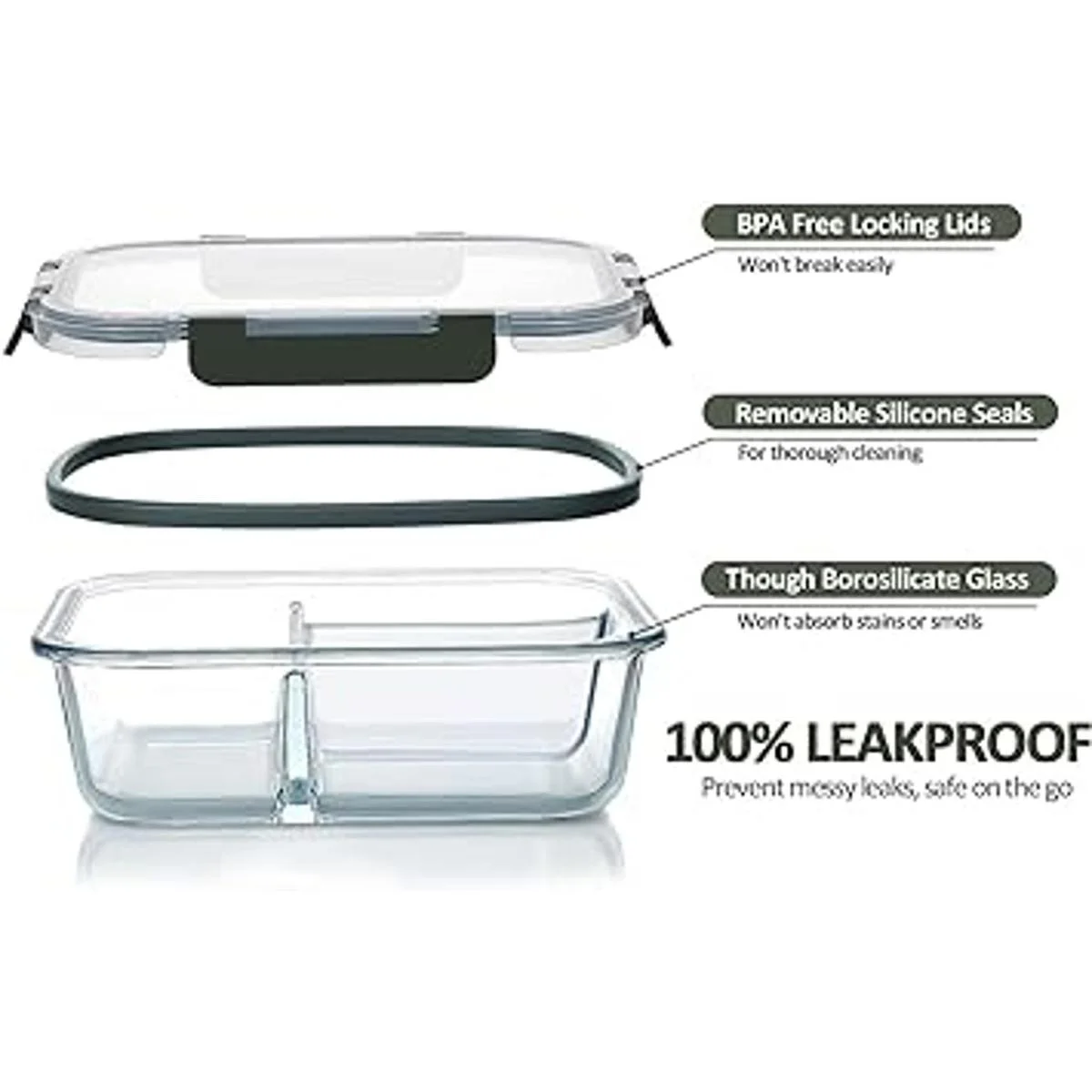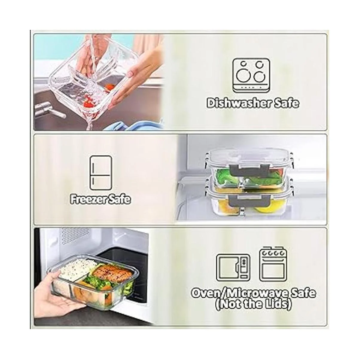 Función de control de porciones: la función de control de porciones de los recipientes de almuerzo de vidrio dividido te permite recuperar el control sobre tus comidas. Los recipientes de vidrio de dos compartimentos hacen que sea fácil organizar tus comidas y mantener tu plan de dieta.