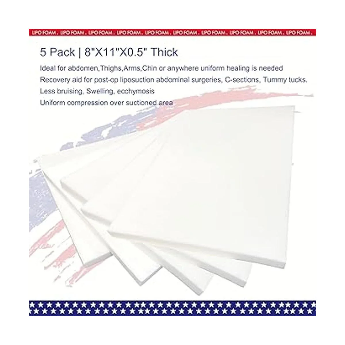 Paquete de 5 almohadillas de espuma Lipo para postoperatoria, tablero abdominal, liposucción, para aplanar prendas de compresión abdominal, hojas de espuma Lipo, 8 x 11 pulgadas
