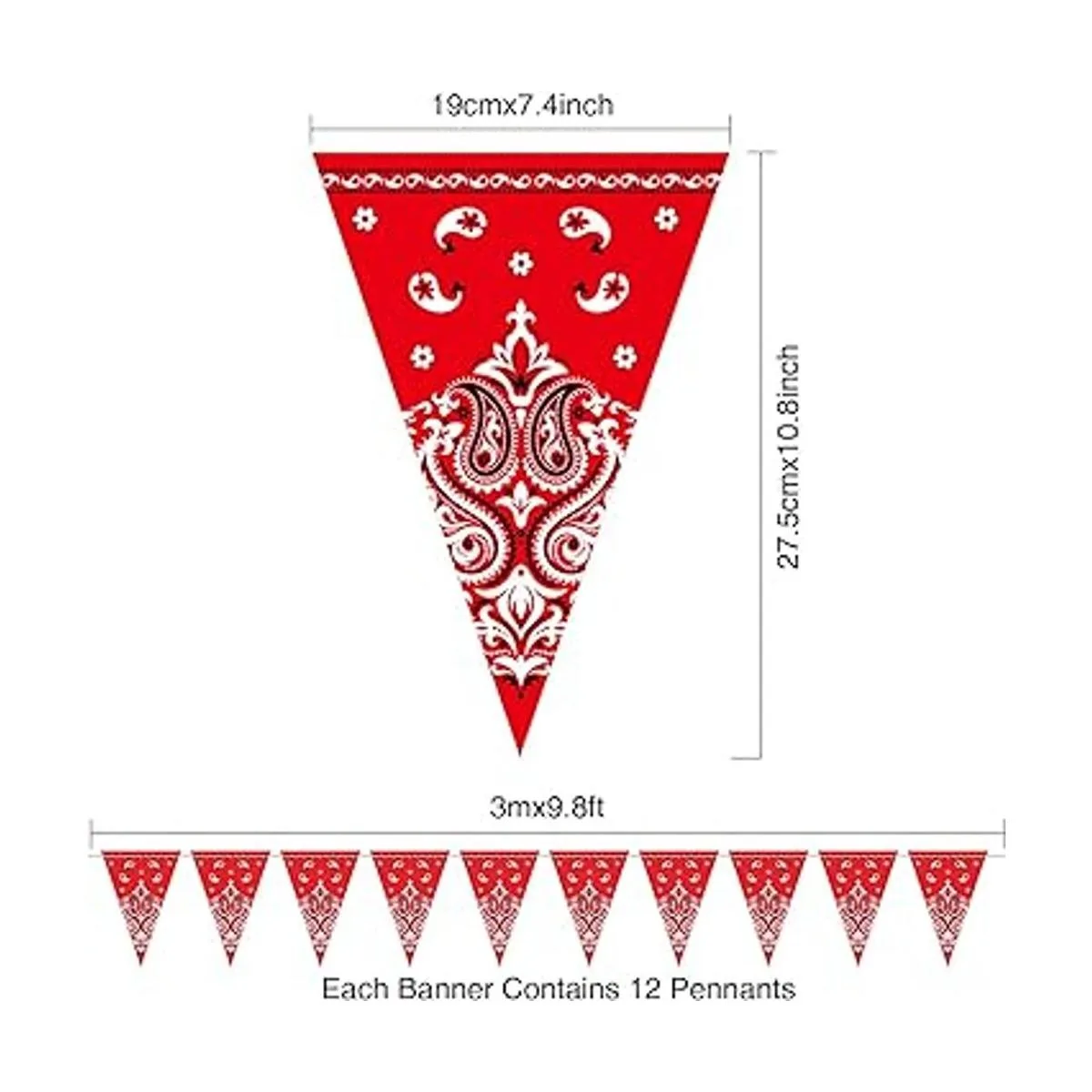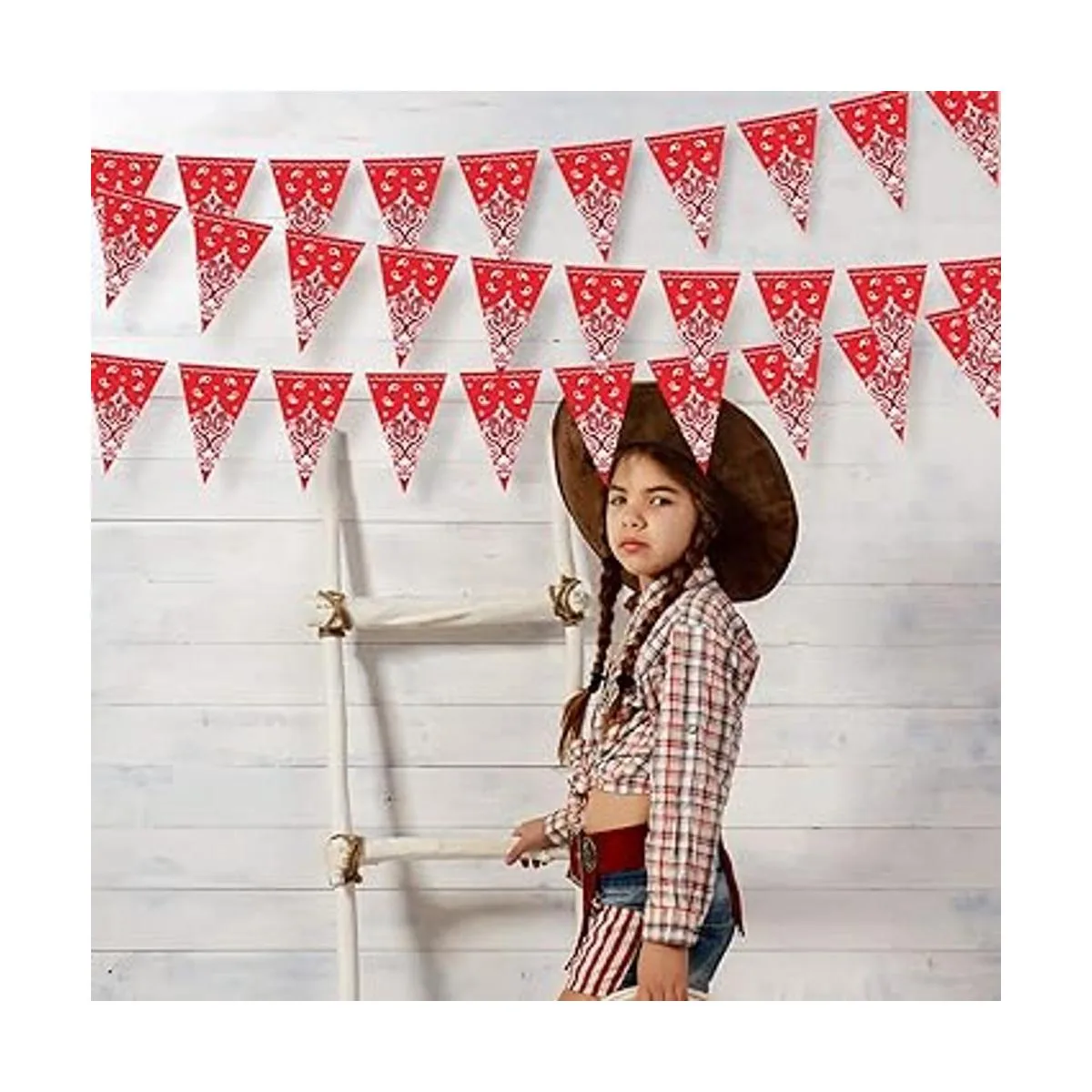 Paquete de 5 banderines de banderines de Navidad, accesorios de fiesta del salvaje oeste para decoración de fiesta temática de vaquero occidental, 7.4 x 10.8 pulgadas