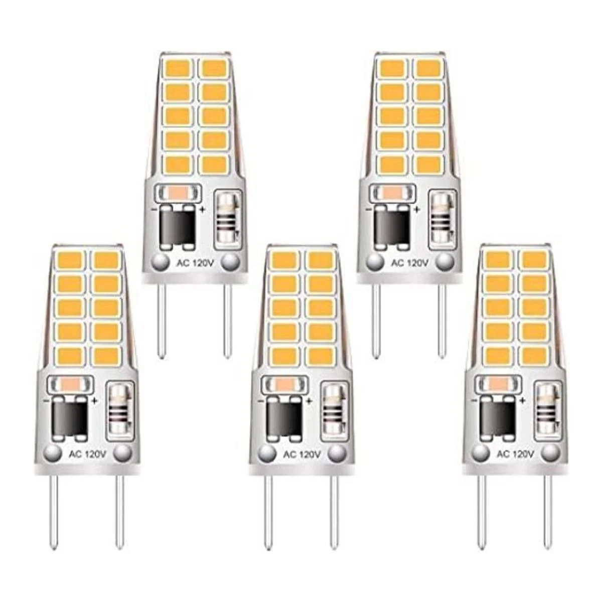 Paquete de 5 bombillas LED G8 de color blanco suave, 2700 K, 120 V, 3 W, equivalente a bombilla halógena G8, 35 W, T4 JCD, tipo GY8.6, base bipines, no regulable para debajo de la luz del gabinete, iluminación de la cocina debajo del mostrador