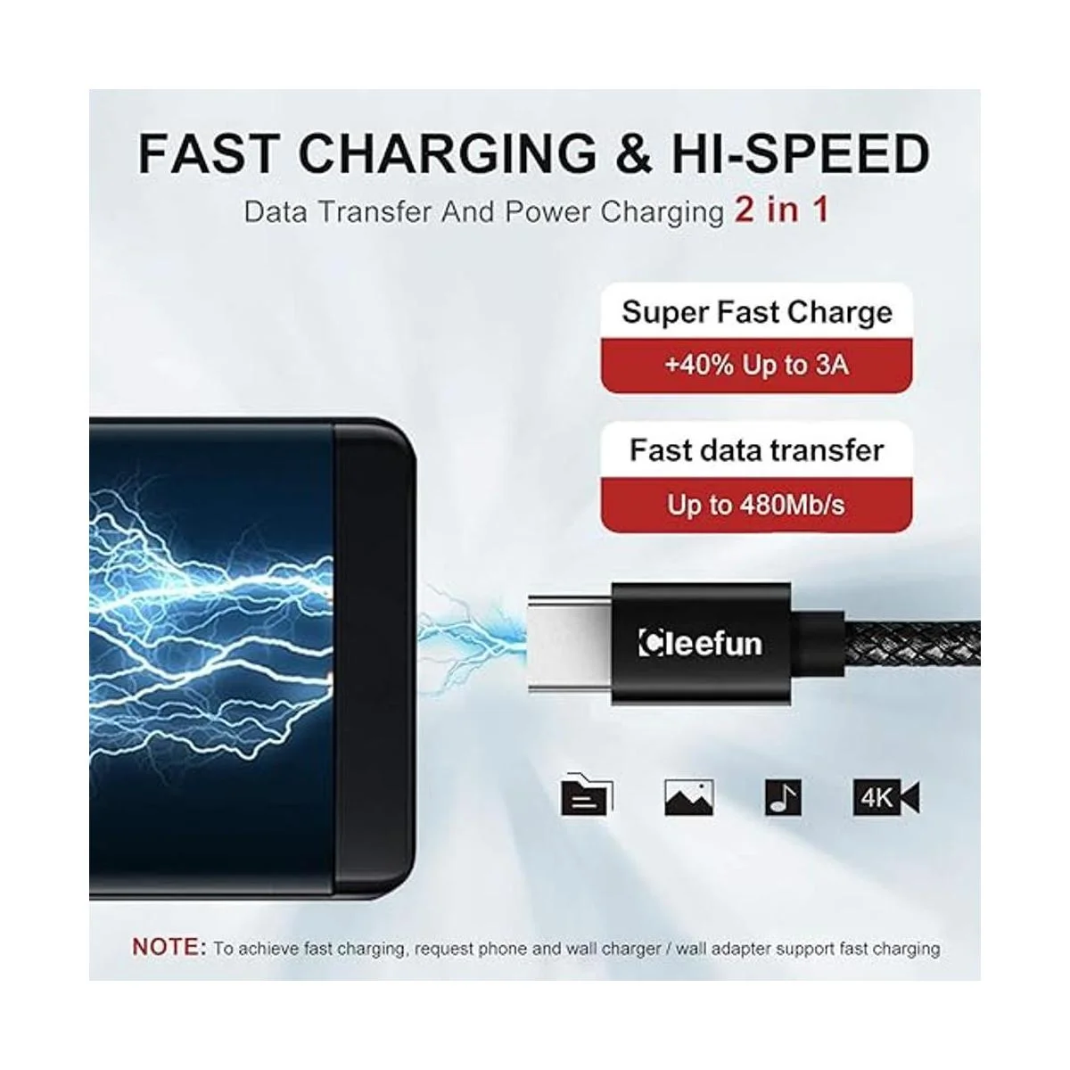 3A FAST CHARGE DATA TRANSFER : CLEEFUN USBA to USBC Charger Cable support QC 2.0/3.0 3A max Fast Charging and Data Transfer speed up to 480Mbps. Data Syncing and Power Charging 2 in 1 to save your much time Builtin 56K pullup resistor and strong metal connections provide outstandingly reliable conductivity and stability.