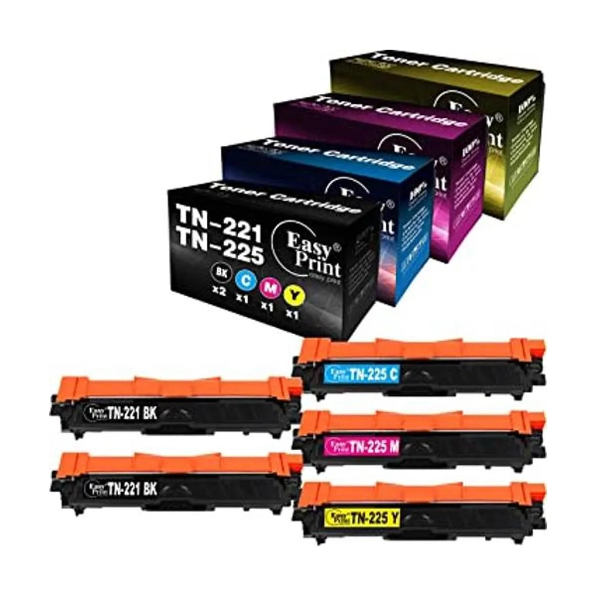 Paquete de 5 cartuchos de tóner compatibles TN221 TN225 2xBKCMY de alta capacidad para impresoras Brother HL3140CN 3142CN 3151CDN 3150CDW 3152CDW 3170CDW 3172CDW 3180CDW, vendidos por EasyPrint