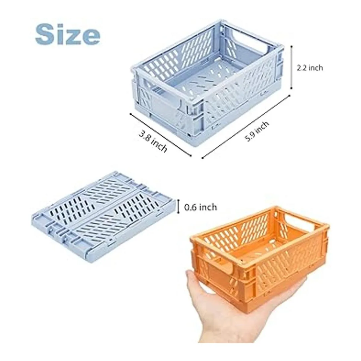 Canastas coloridas: paquete de 5 cestas de almacenamiento plegables apilables. Tamaño: 5.9 x 3.8 x 2.2 pulgadas. Azul/amarillo/verde/rosa/naranja para almacenar diferentes tipos de artículos en diferentes cestas de color, puedes estrechar rápidamente el rango de búsqueda cuando estás buscando artículos, sin perder tiempo en repetidas veces