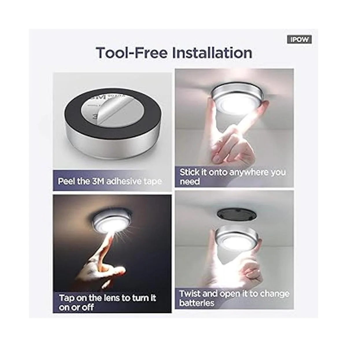 Paquete de 5 luces LED IPOW inalámbricas de noche, lámpara táctil con llave para armarios, armarios, encimeras o cuartos de servicio, luz táctil inalámbrica, batería no incluida