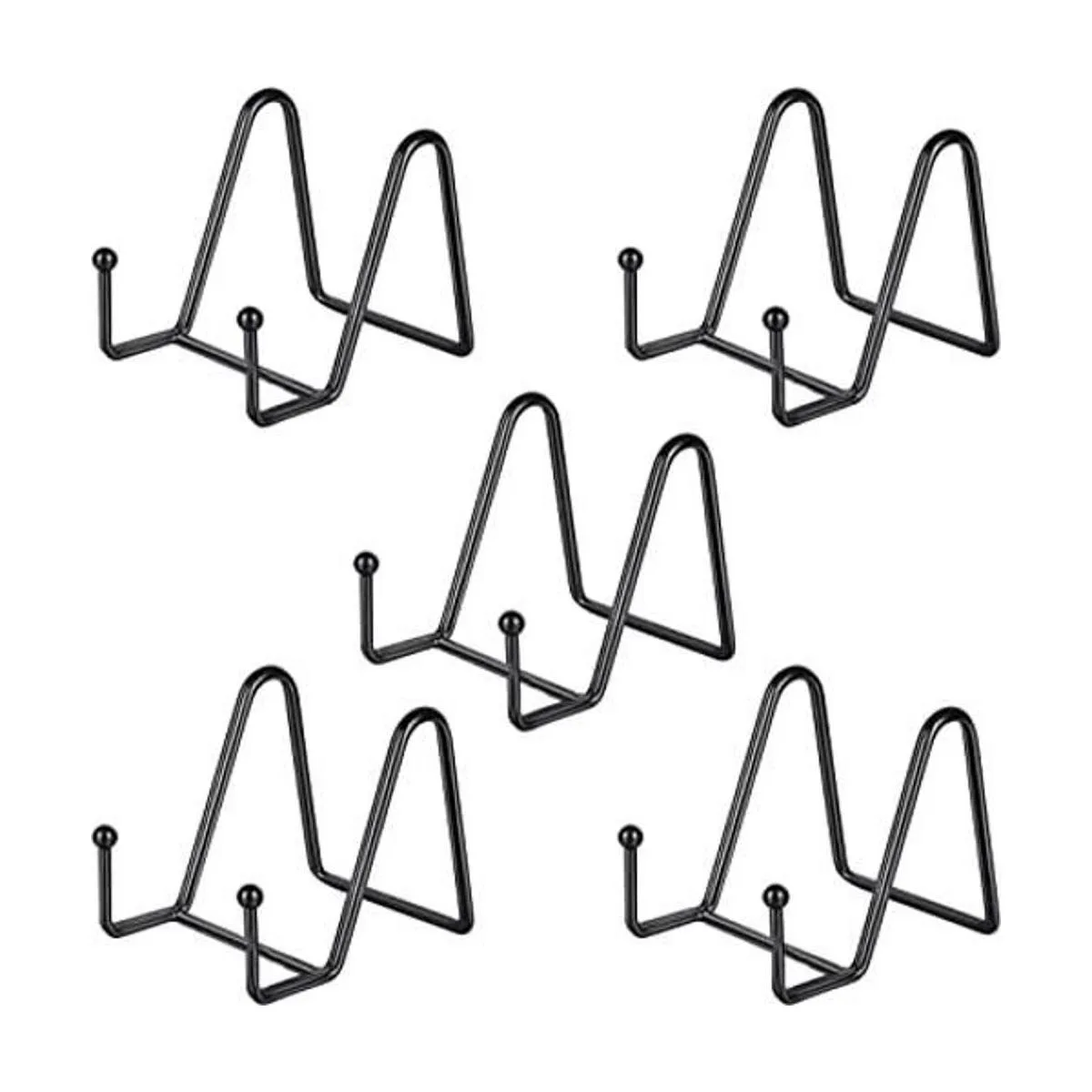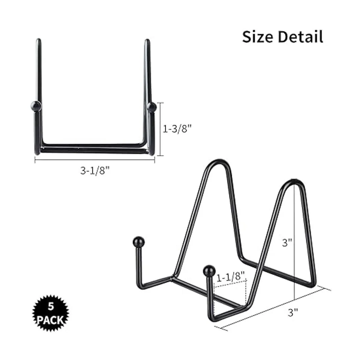 Paquete de 5 soportes de exhibición para placas de 3 pulgadas, soporte de marco negro de metal para fotos, libros, caballete de fotos, creación, coleccionables