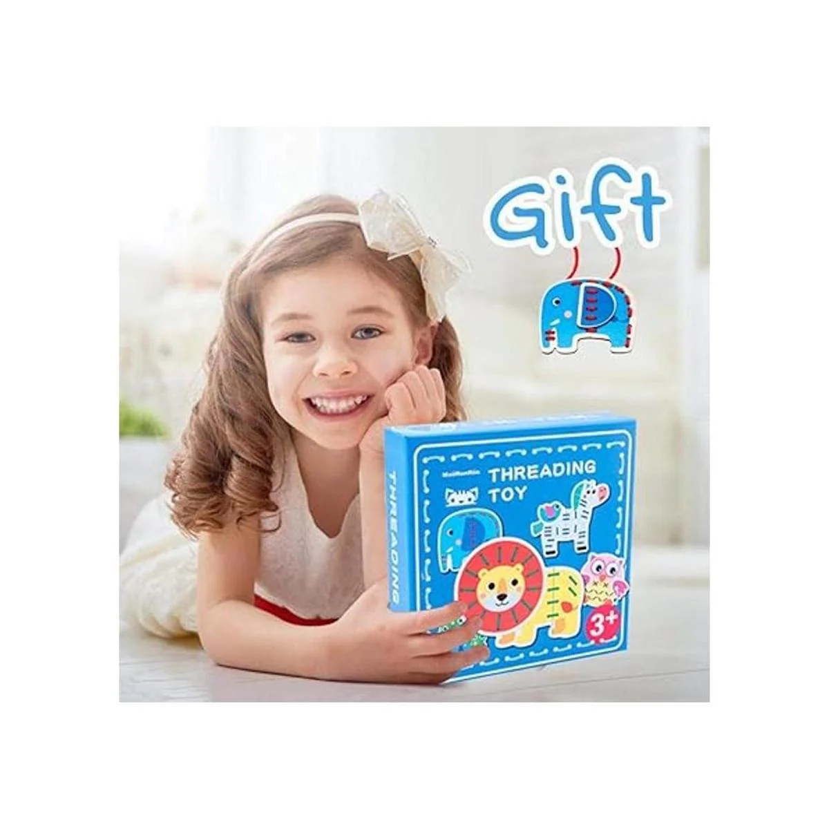 Paquete de 5 tarjetas de cordones de animales, rompecabezas de madera, tarjetas de costura Montessori para niños pequeños, aprendizaje temprano, habilidades motoras finas, juguetes preescolares
