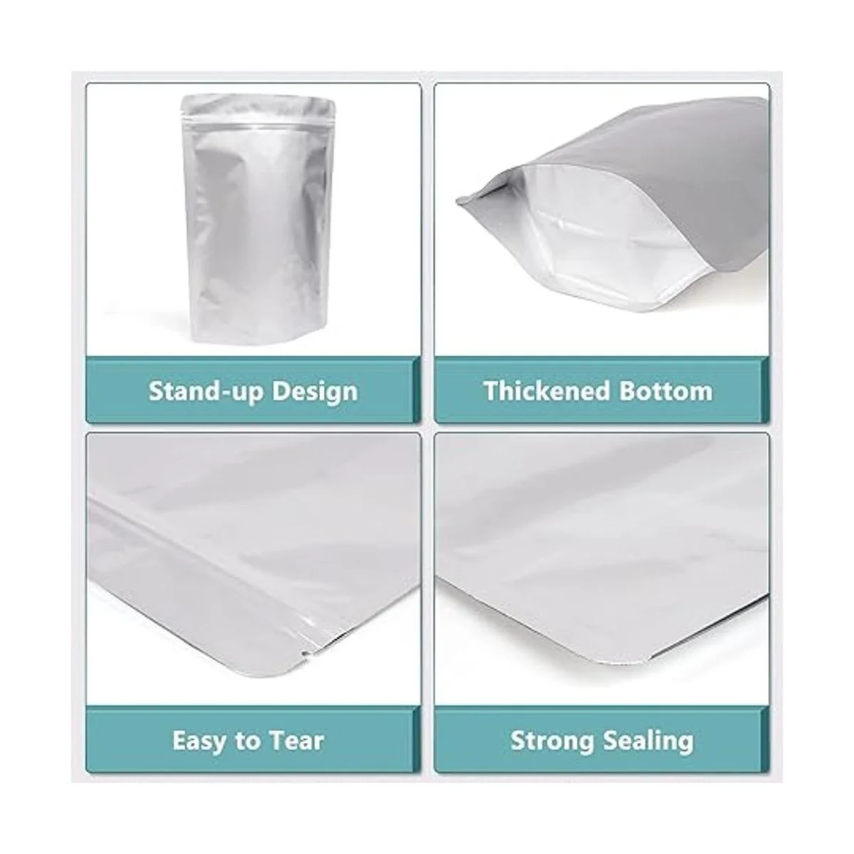 Paquete de 50 bolsas de Mylar extra gruesas de 9.4 mil, 7 x 10 pulgadas, 1 cuarto de galón para almacenamiento de alimentos a largo plazo con 50 labores, bolsas resellables a prueba de olores para embalaje comestible, bolsa de papel de aluminio de pie para té de arroz