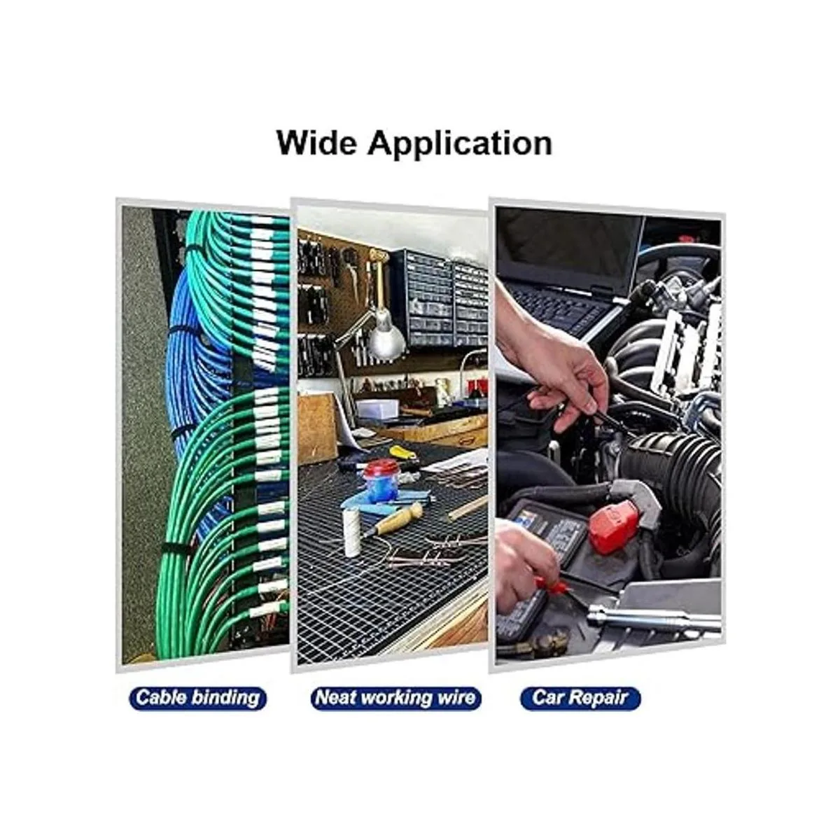 Aplicación: ampliamente utilizado en el hogar, industria de la construcción, industria electrónica, industria automotriz, montaje de cables y cables, embalaje y envío, actividades al aire libre