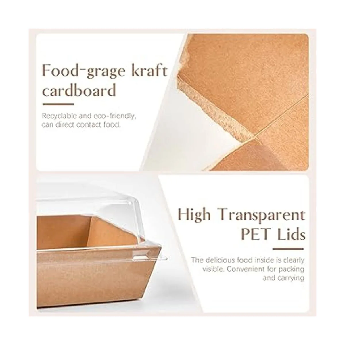 Material de alta calidad: la caja de charcutería está hecha de cartón blanco resistente y la tapa está hecha de plástico PET, reciclable y duradero, puede entrar en contacto directo con los alimentos.