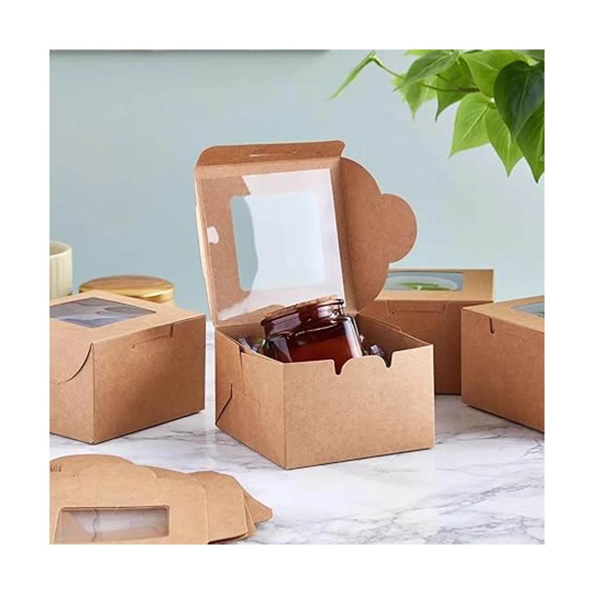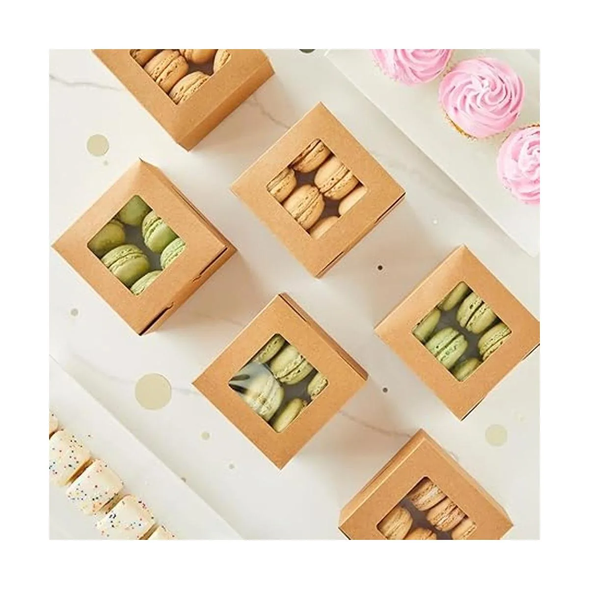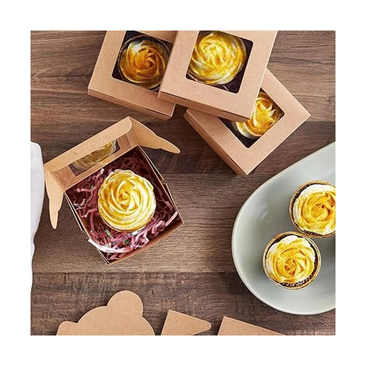Paquete de 50 cajas individuales de repostería con ventana para suministros de panadería, recipientes de postre Kraft de 4 x 4 x 2 para magdalenas, golosinas, galletas, mini pasteles