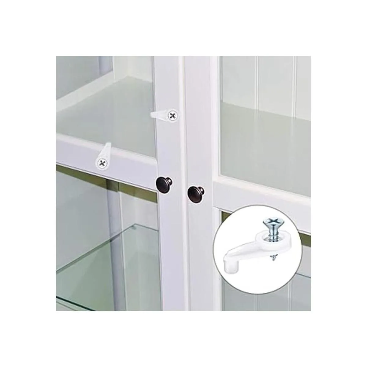 Paquete de 50 clips de retención de vidrio, clips de vidrio de 0.157 in con tornillos para fijar puertas de gabinete de vidrio blanco con tornillo plateado