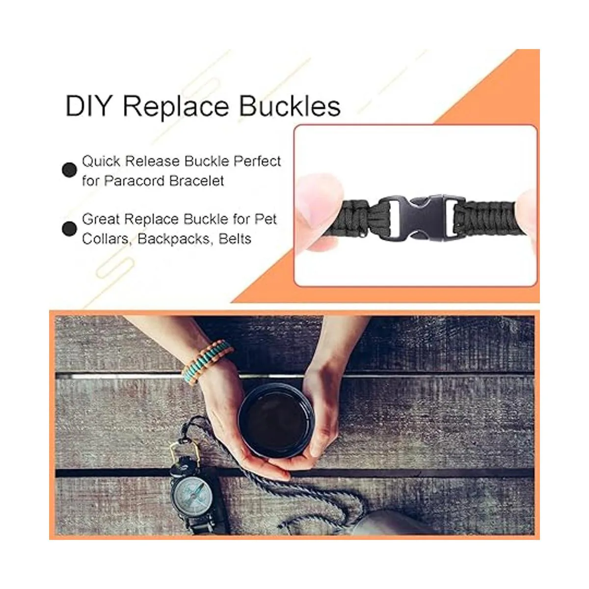 Hebillas de liberación lateral: tamaño perfecto y sin bordes afilados que tienen un fuerte agarre cuando están en uso. Perfecto para su uso en la fabricación de pulseras de paracaídas