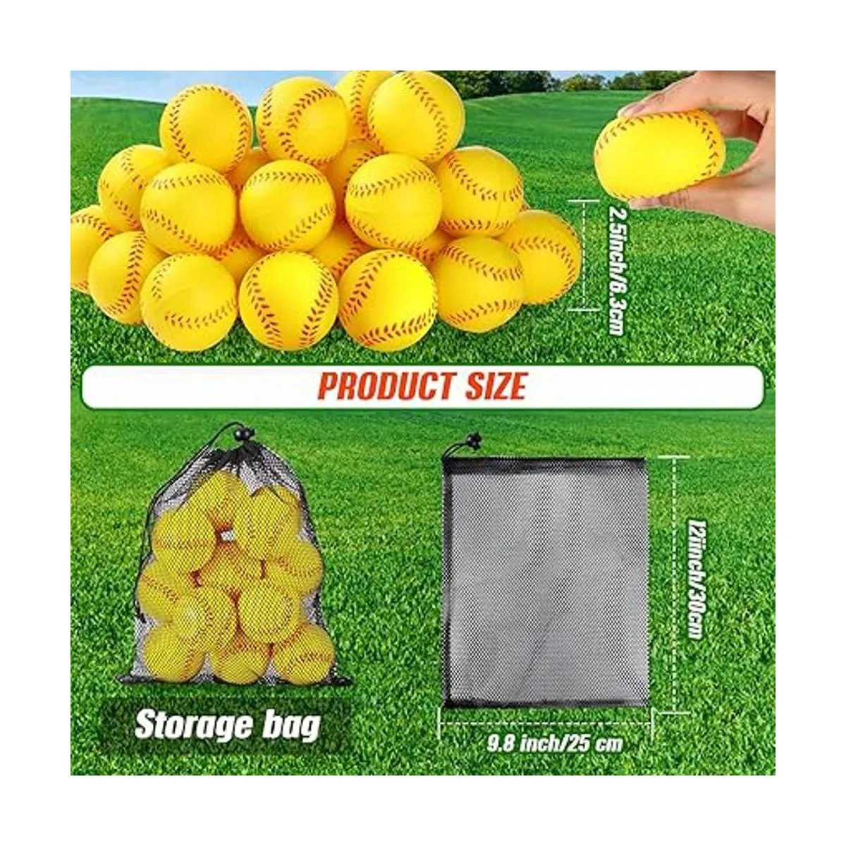 Paquete de 50 mini bolas de softbol para el estrés de 2.5 pulgadas de espuma amarilla para fiesta de béisbol juguetes con bolsa de almacenamiento para adultos, adolescentes, alivio del estrés, relleno de bolsas de regalo, recompensa de carnaval escolar, juegos de pelota