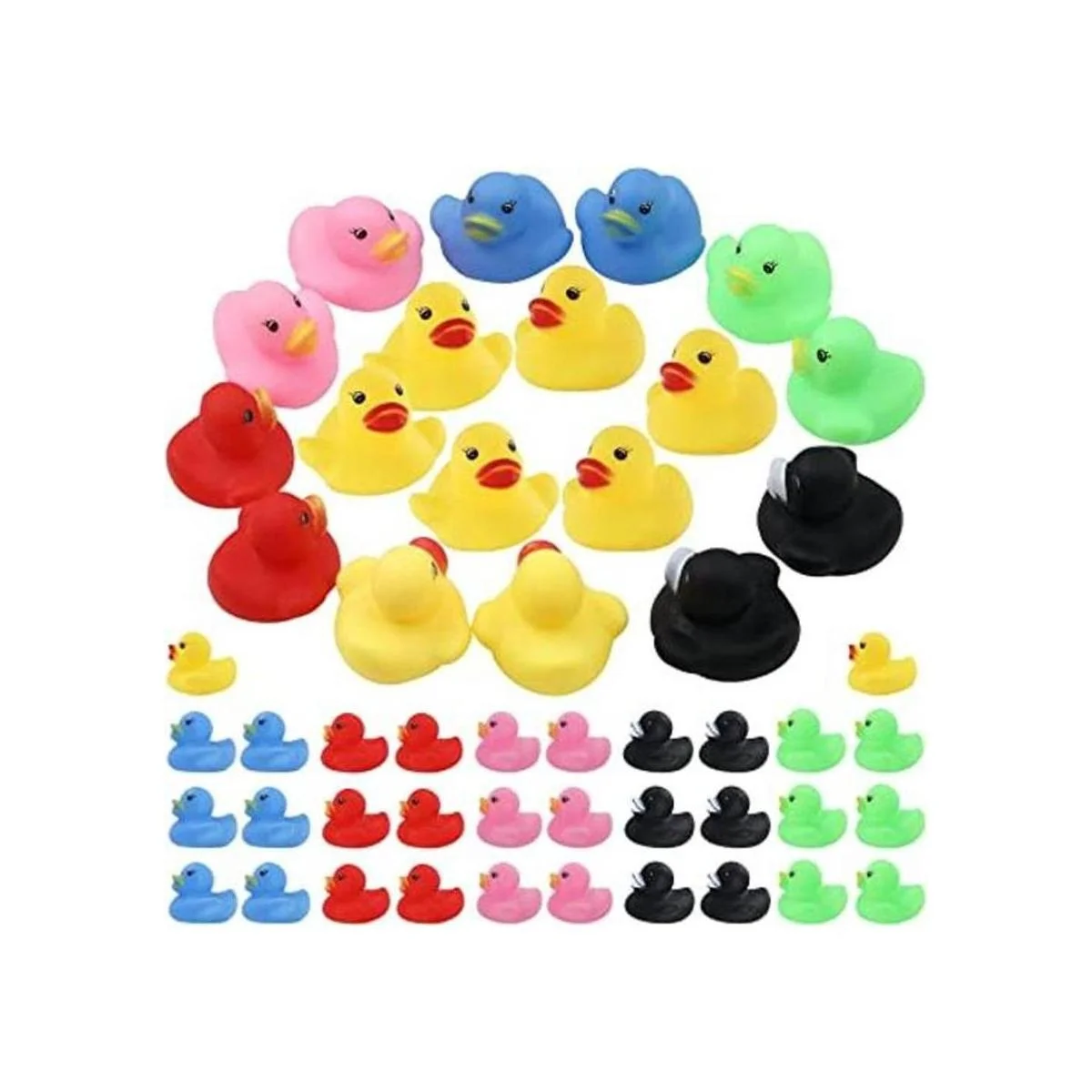 Paquete de 50 mini juguetes de baño de pato multicolor de goma, ideal para Jeep Ducking, ducha, fiesta de cumpleaños, regalo de juego de carnaval 1.6 pulgadas de largo x 1.5 pulgadas de ancho x 1.4 pulgadas de alto. 6 colores