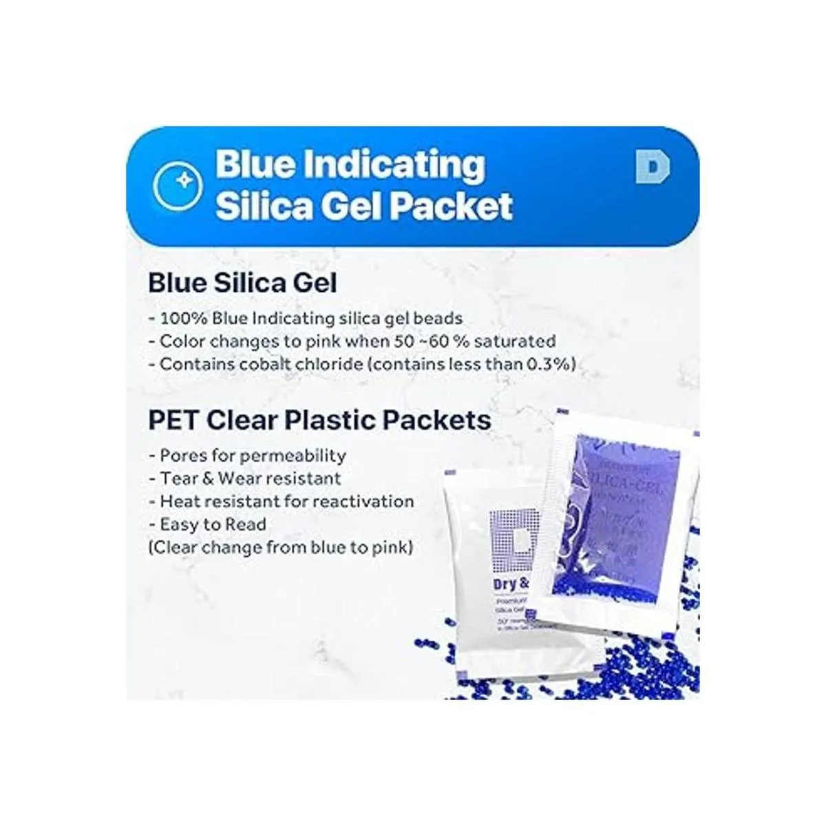 Paquete de 50 paquetes de gel de sílice de alta calidad azul indicador de gel de sílice deshumidificador desecante, paquetes de sílice recargables para paquetes de gel de sílice absorbentes de humedad