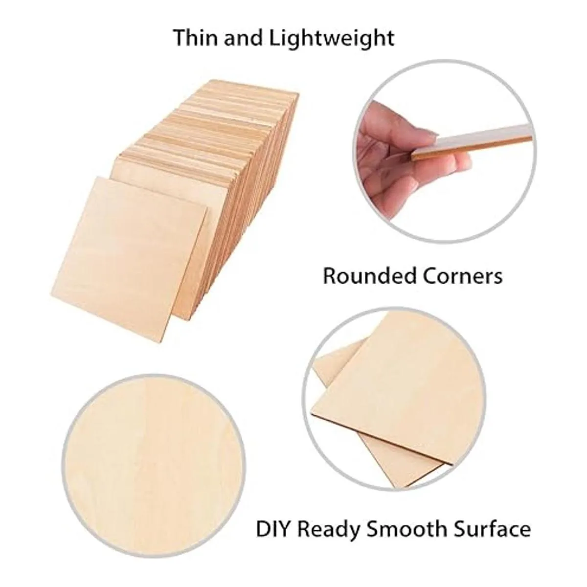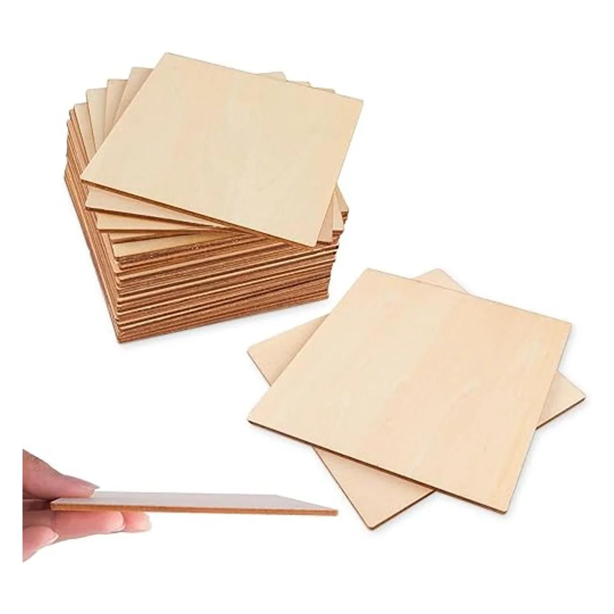 Paquete de 50 piezas cuadradas de madera sin terminar en blanco de madera natural para artes y manualidades, pintura de bricolaje, quema y tinción 3.9 in