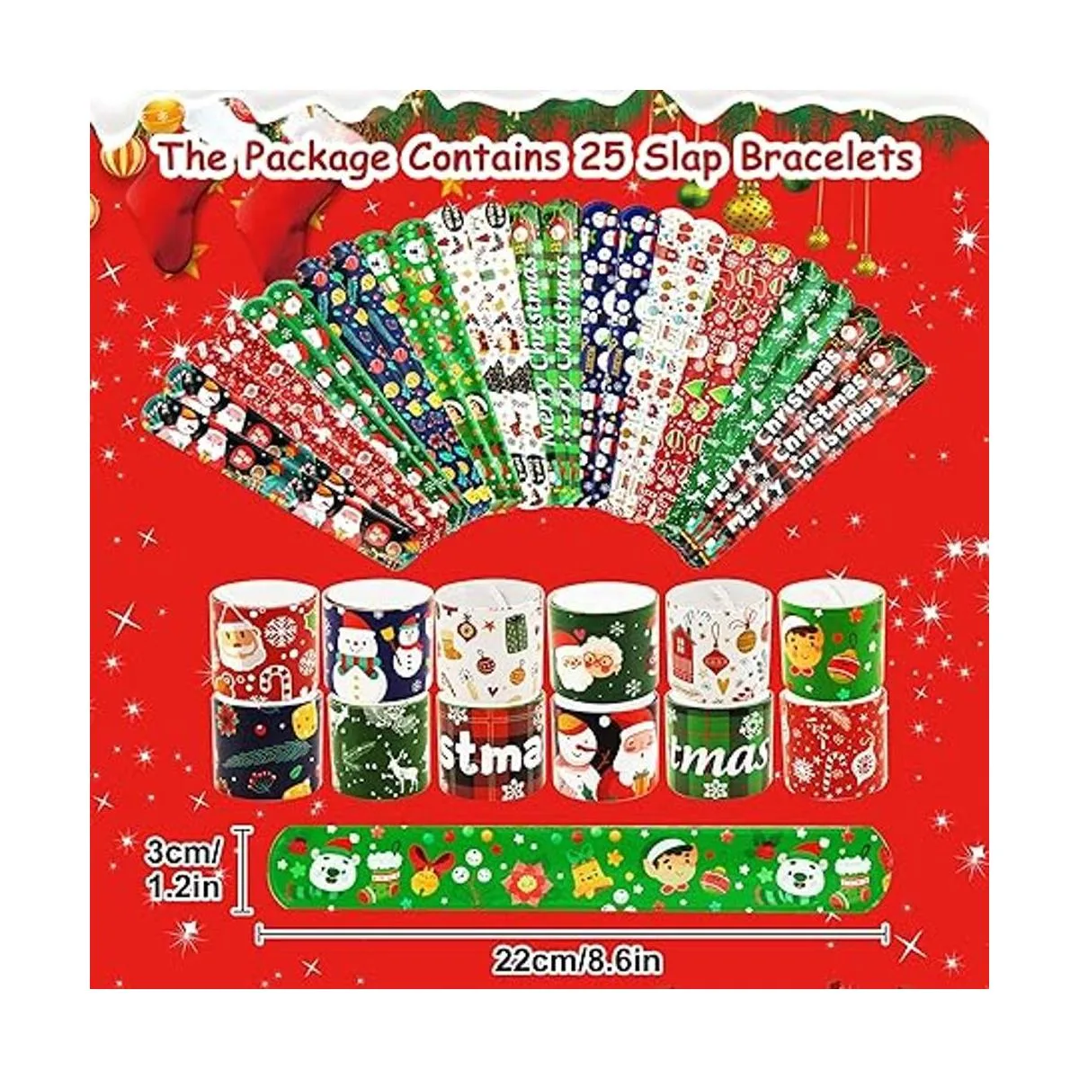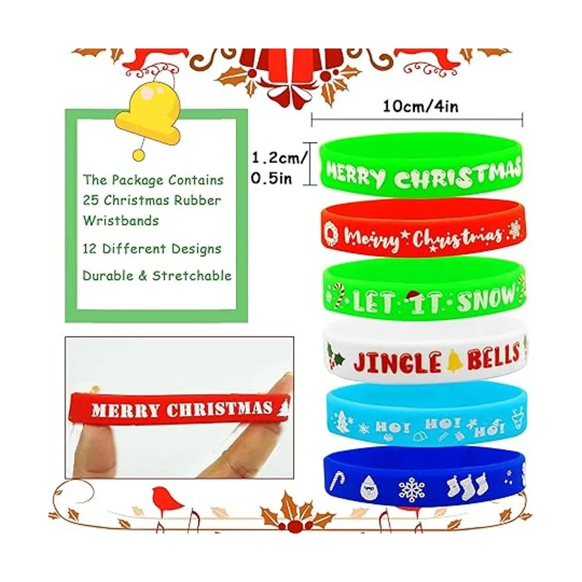 Fiesta a granel 50 juguetes de pulsera de Navidad en total. 25 piezas de goma en 10 estilos de Navidad, 25 piezas en 10 estilos de Navidad, rodean fácilmente tu muñeca, perfecto para premios escolares de Navidad para niños, intercambio de regalos.