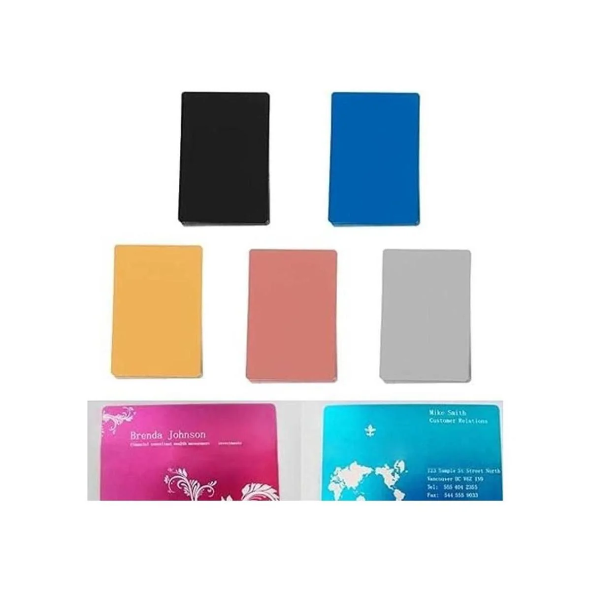 Package Included: Our metal blank cards pack contains 50 pieces of standardsized aluminum blank name cards. 5 color, each color 10pcs .You can print the text or pattern you want on the business card and will not be deleted.