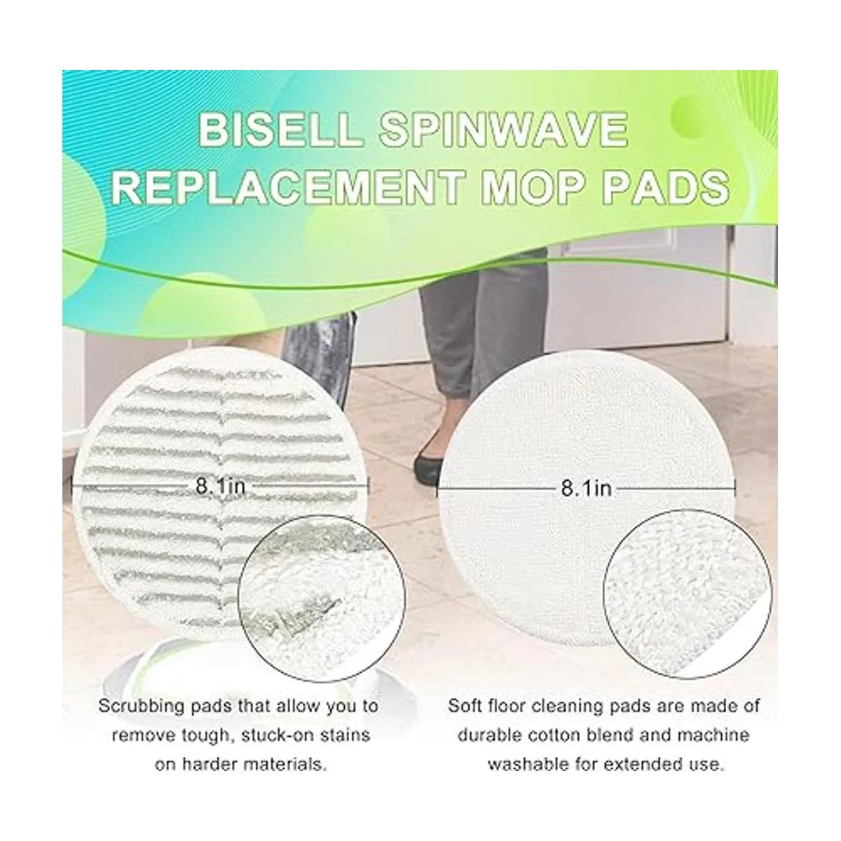 Paquete de 6 almohadillas de repuesto para trapeador eléctrico Bisell Spinwave 2124 (2 almohadillas de fregado + 4 almohadillas suaves) compatibles con Bisell Spinwave 2039 2039A 2307 Serious Moppad