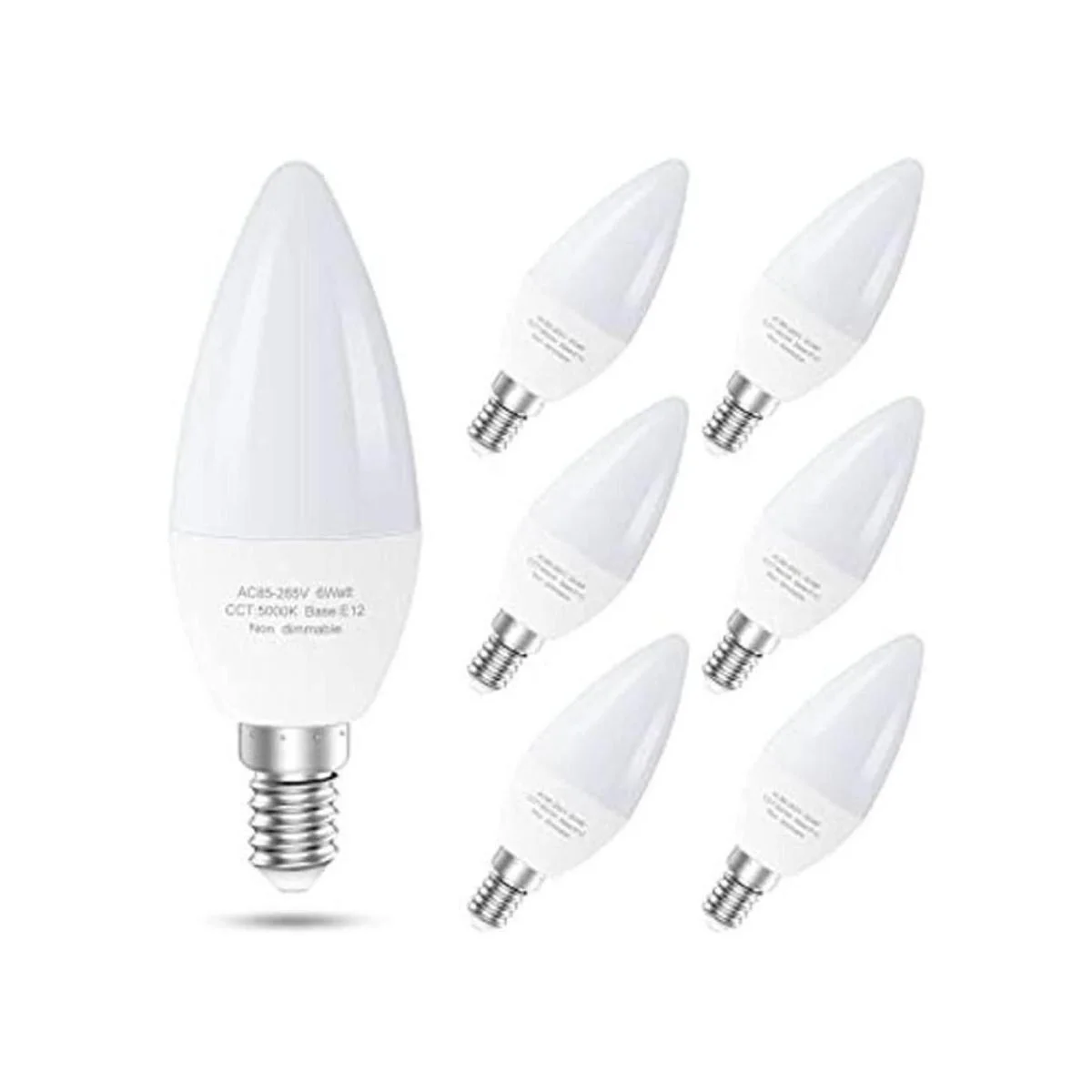 Paquete de 6 bombillas LED E12 para ventilador de techo, bombillas LED de candelabro equivalente a 60 vatios, luz diurna de 5000 K, bombilla tipo B para candelabro, bombillas de vela, no regulable