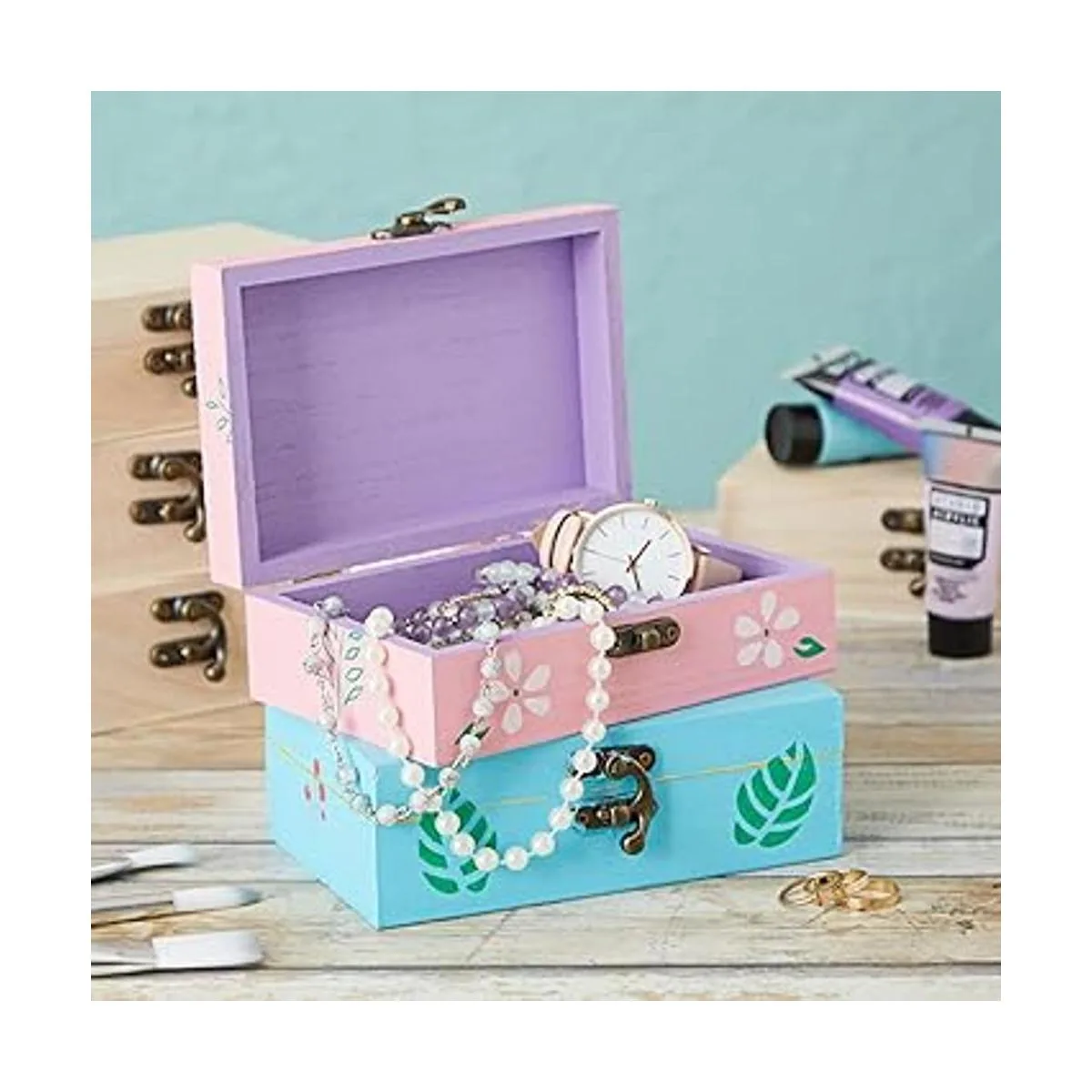 Paquete de 6 cajas de regalo de madera sin terminar con tapas con bisagras para joyas, caja de madera para manualidades de bricolaje (6 x 4 x 2 pulgadas)