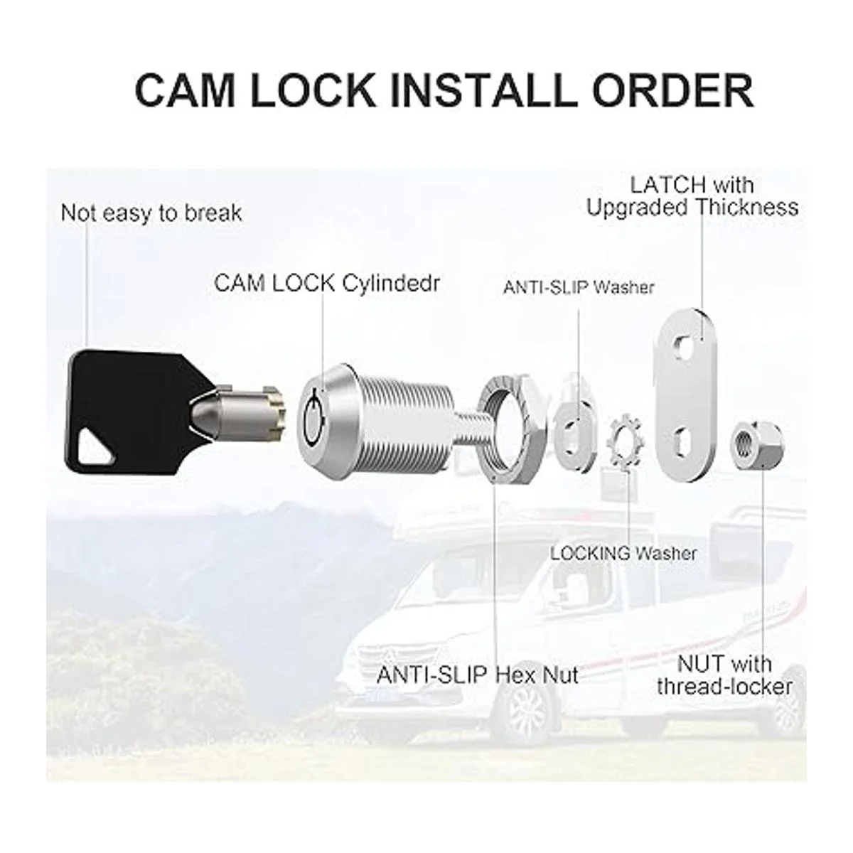 Actualizado y duradero: las cerraduras de almacenamiento para vehículos recreativos están hechas de aleación de zinc de alta calidad, acabado cromado que tiene una mejor resistencia al agua y a la corrosión, robustez y durabilidad, las cerraduras de cajones con llaves mantienen tus archivos seguros y privados.