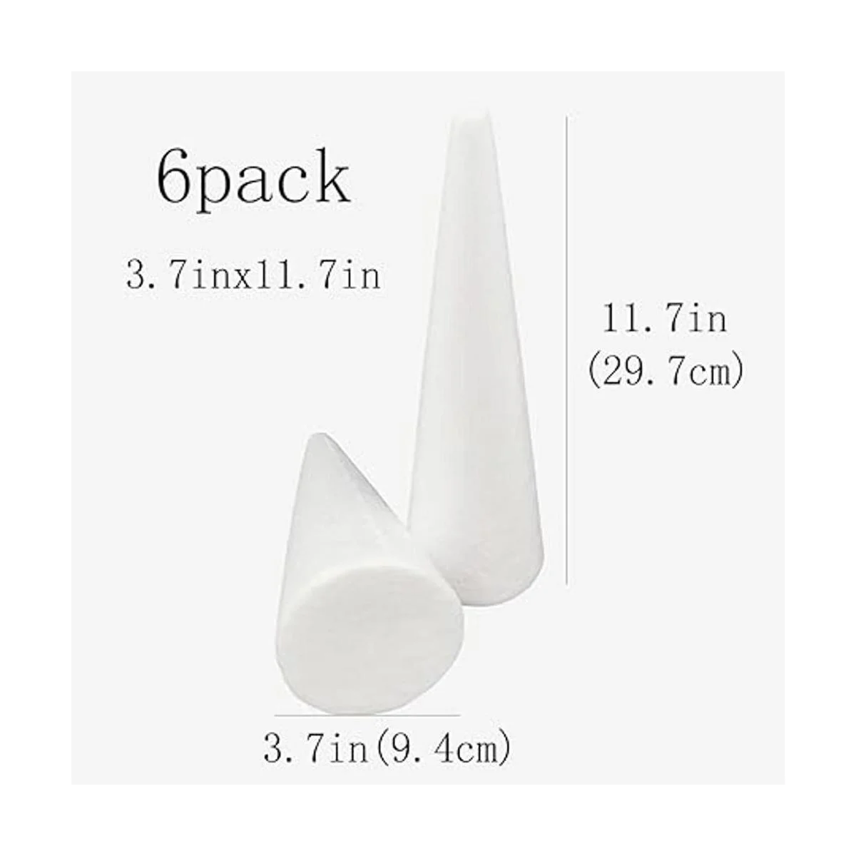 Paquete de 6 conos de espuma para manualidades 3.7 x 11.7 pulgadas, espuma blanca en forma de cono de poliestireno, conos de árbol de espuma, para artes y manualidades, árbol de Navidad, escuela, boda, cumpleaños, proyecto de manualidades en casa.