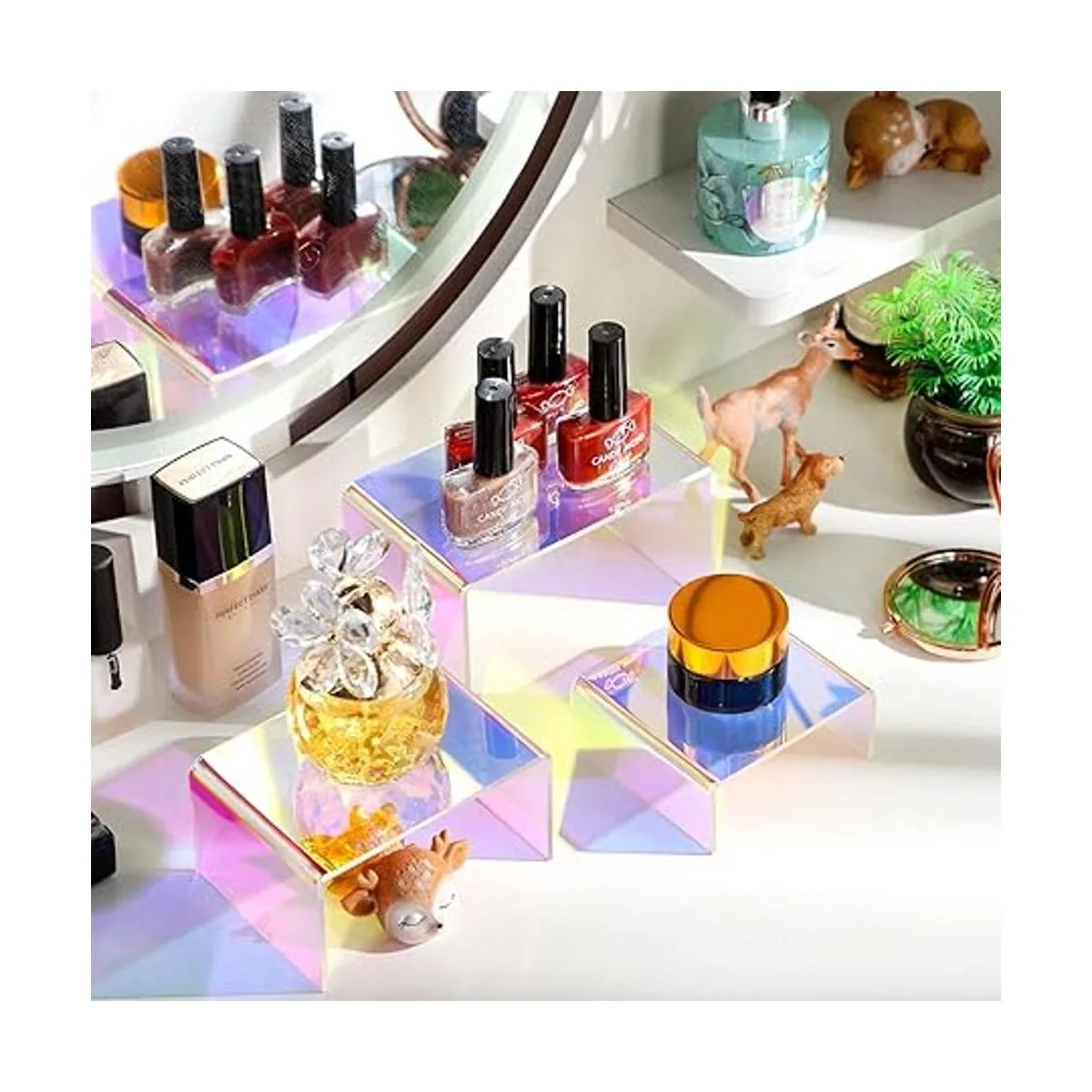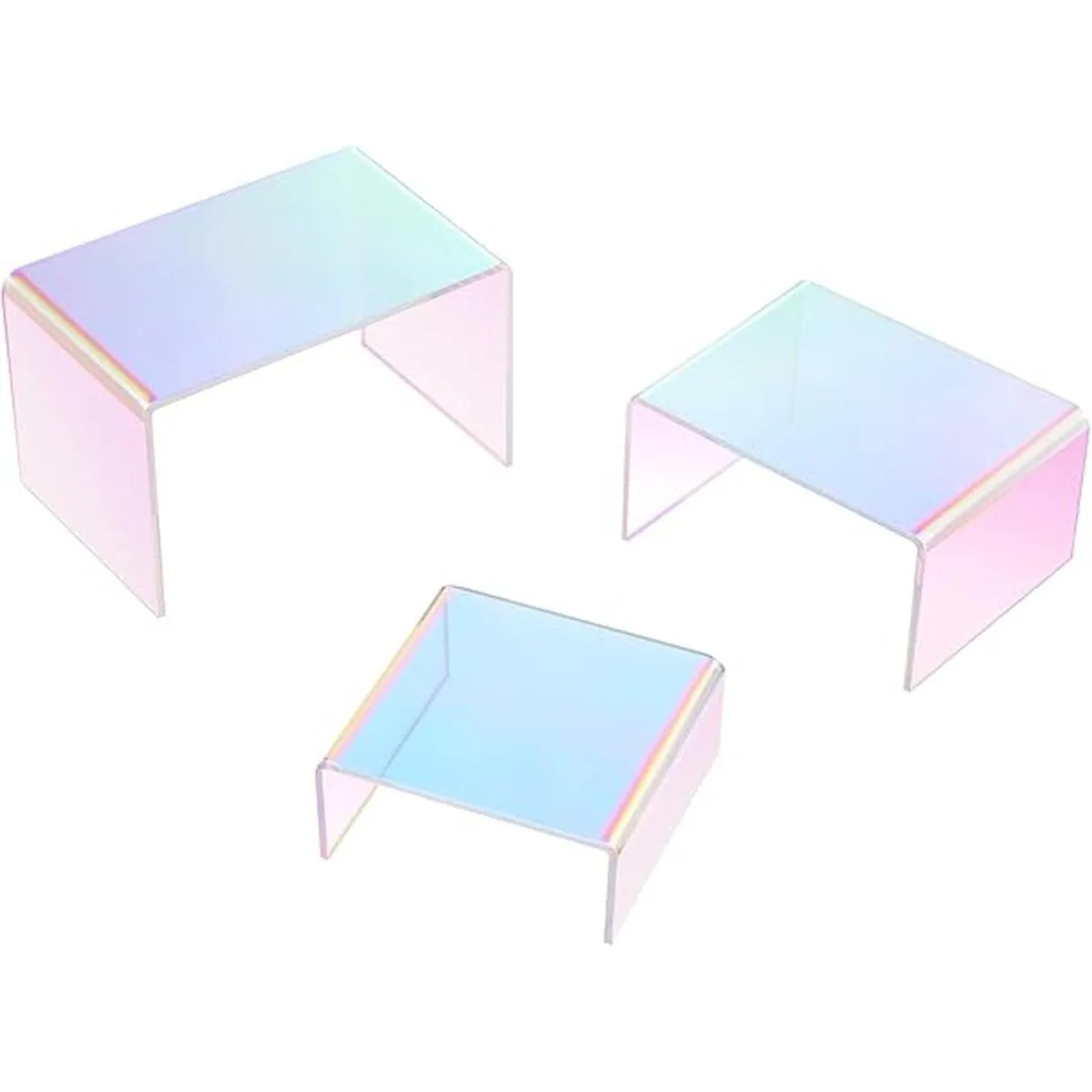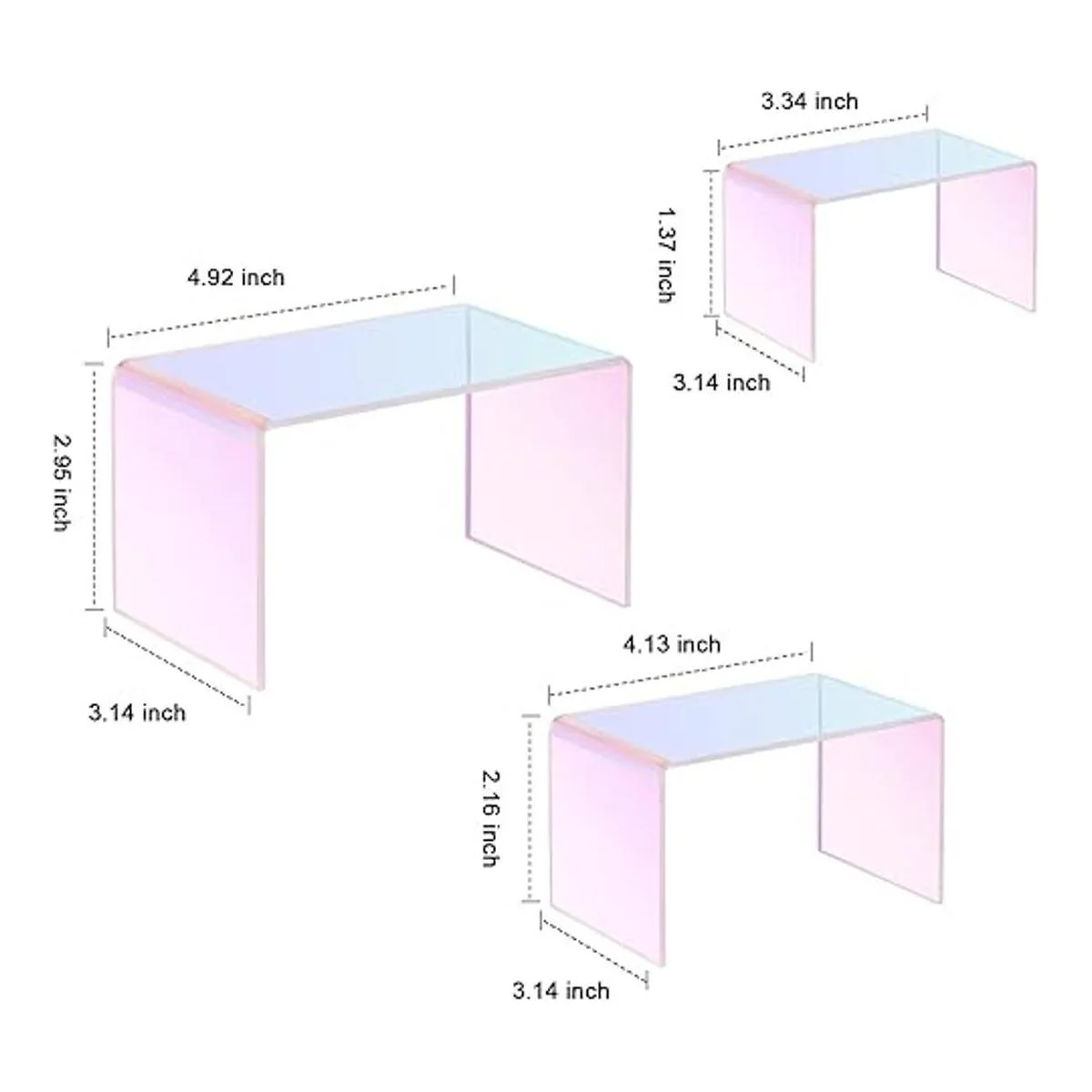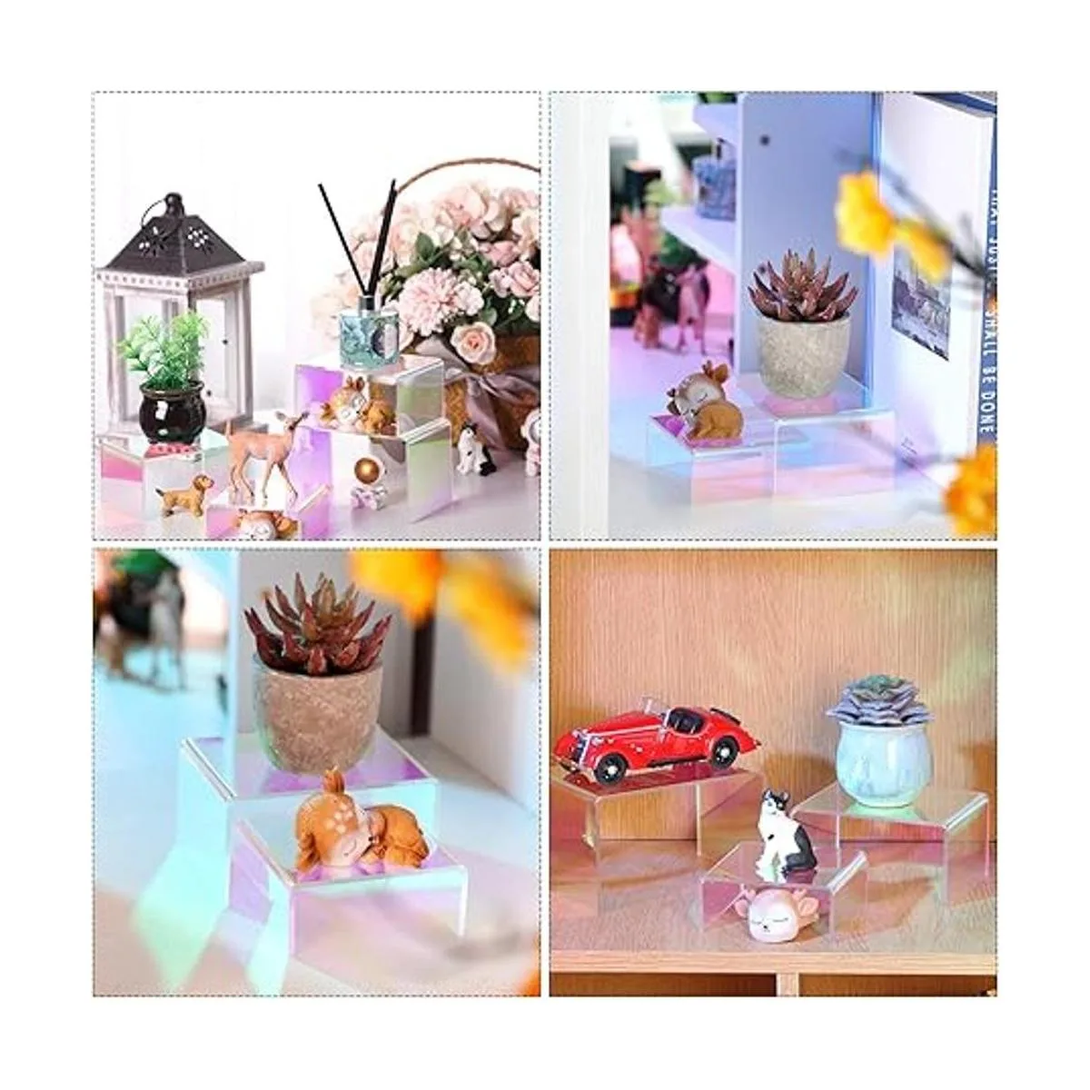 Material: estos elevadores de exhibición iridiscentes están hechos de acrílico, material transparente que se ve limpio y ordenado, calidad y estable para sostener la exposición
